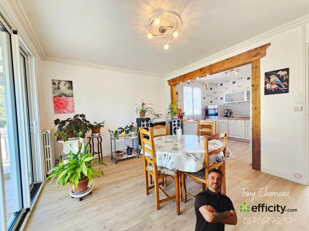 ... à manger lumineux de 31?m² avec insert fermé et ouvertures traversantes ? Cuisine équipée avec accè...