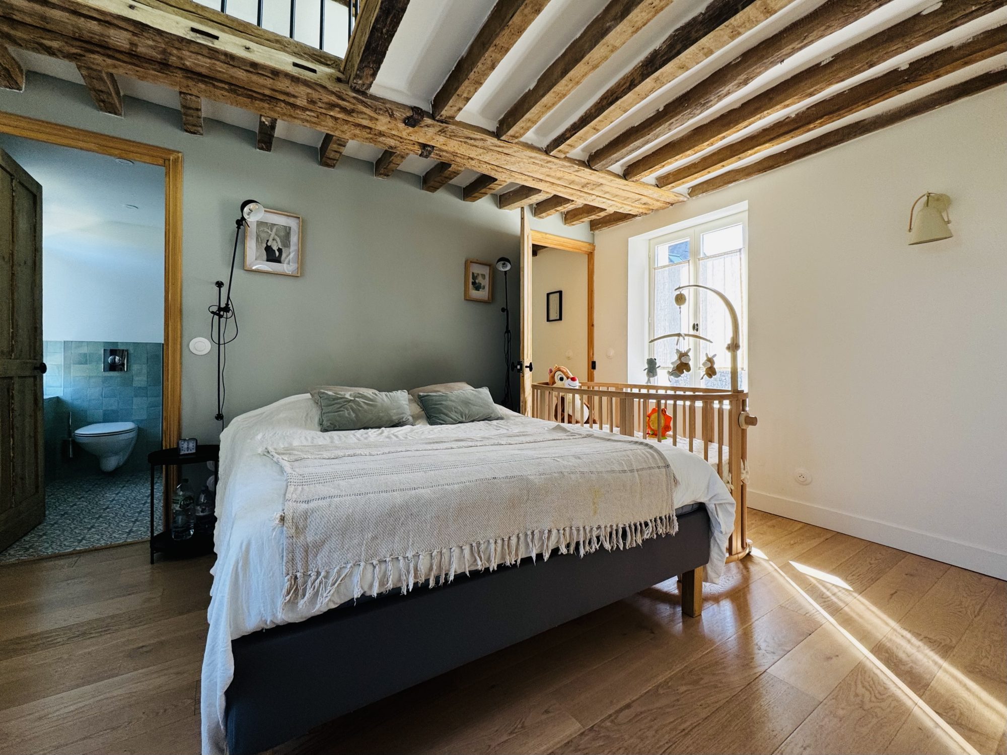 ...A l'étage, deux chambres avec mezzanine, chacune dotée de sa propre salle d'eau et de son wc...