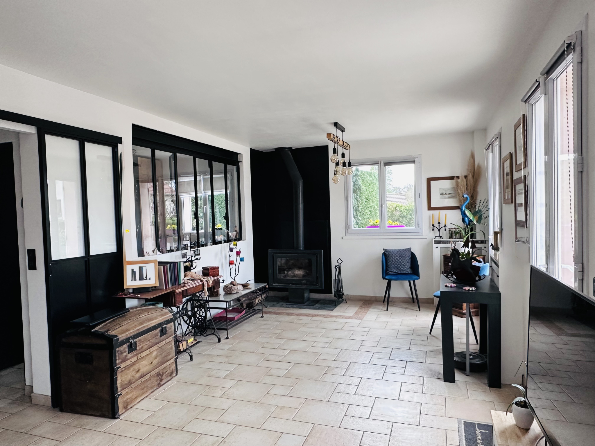 ...Elle est composée, au rez-de-chaussée, d'une grande entrée desservant un séjour baigné de lumière...