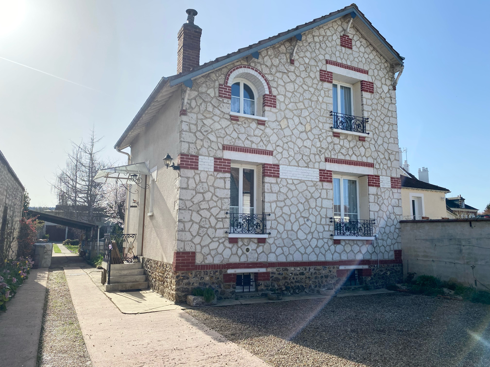 ...Elle comprend une entrée par une véranda, un salon avec une cheminée et une cuisine aménagée avec...