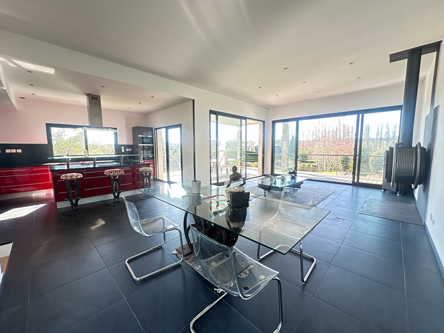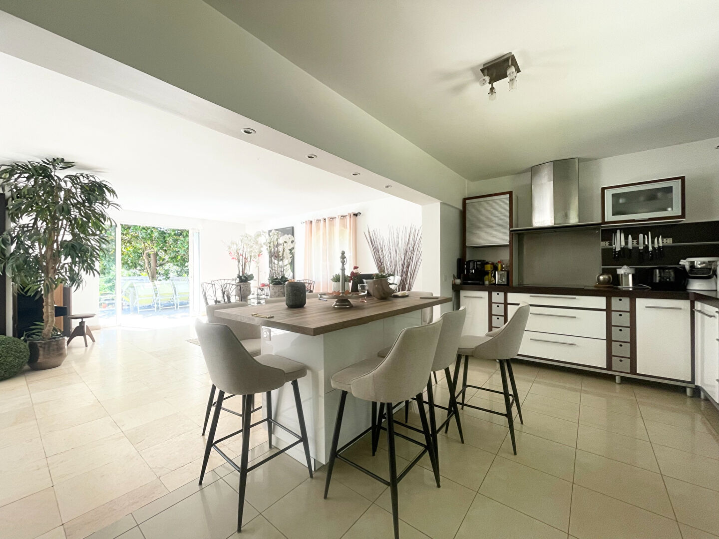 ...En rez-de-chaussée : un hall d'entrée, un pièce de vie de plus de 60m² avec une cuisine ouverte...