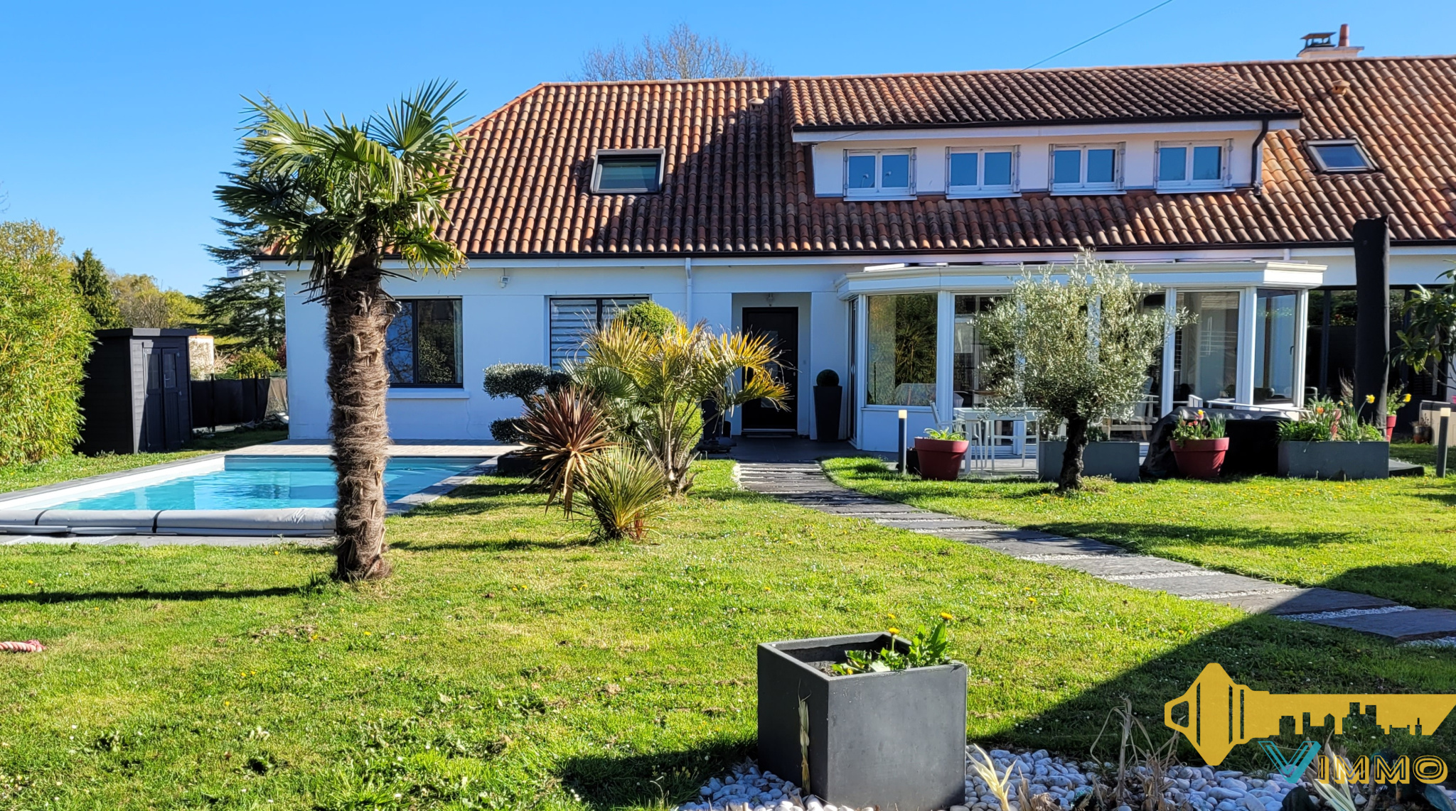 ... chauffée et isolée servant actuellement d'espace repas avec vue sur la piscine, 4 grandes chambres ...