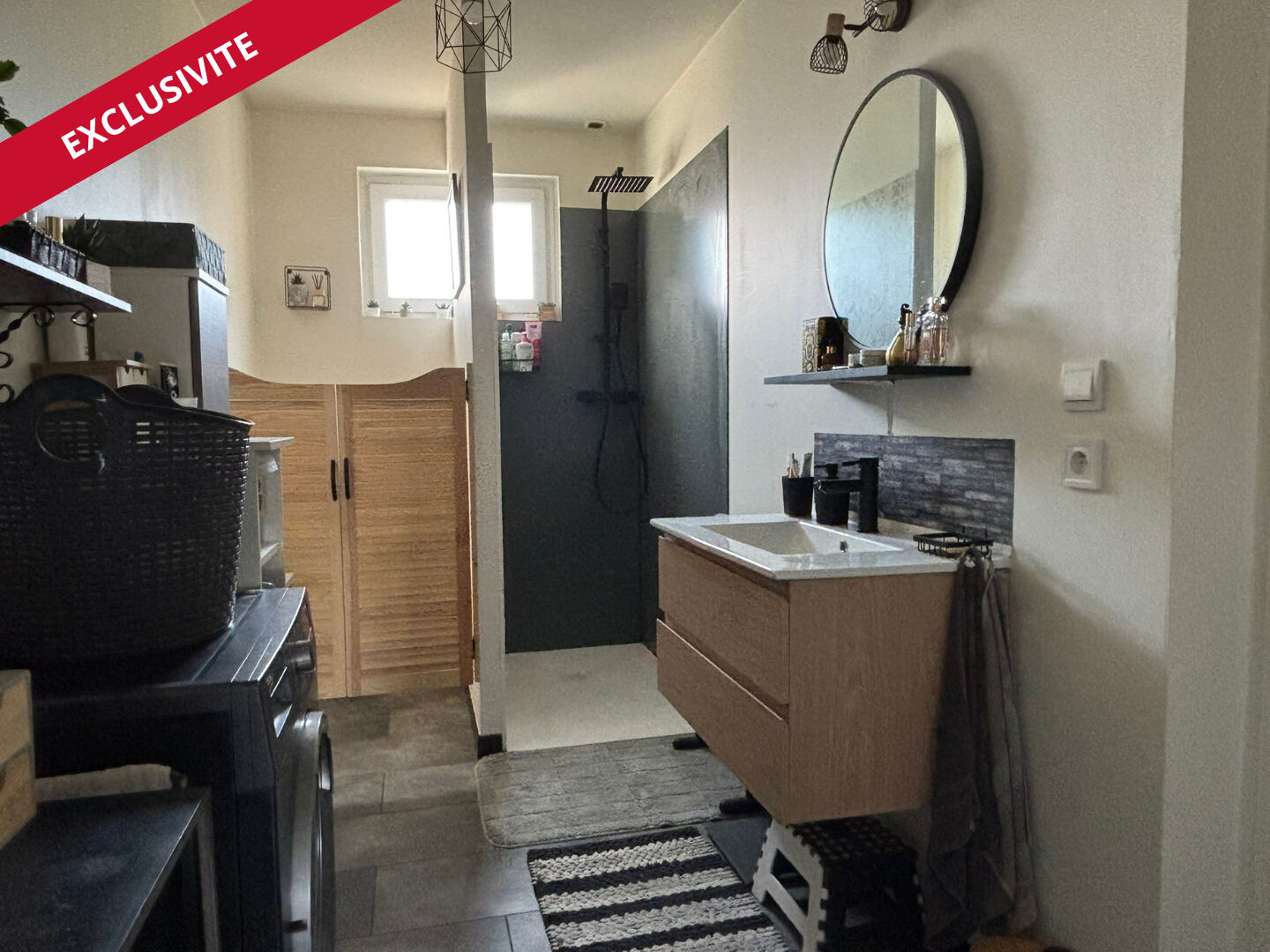 ...Accessible de plain-pied, vous trouverez au rez-de-chaussée : une entrée avec rangement et WC, un...
