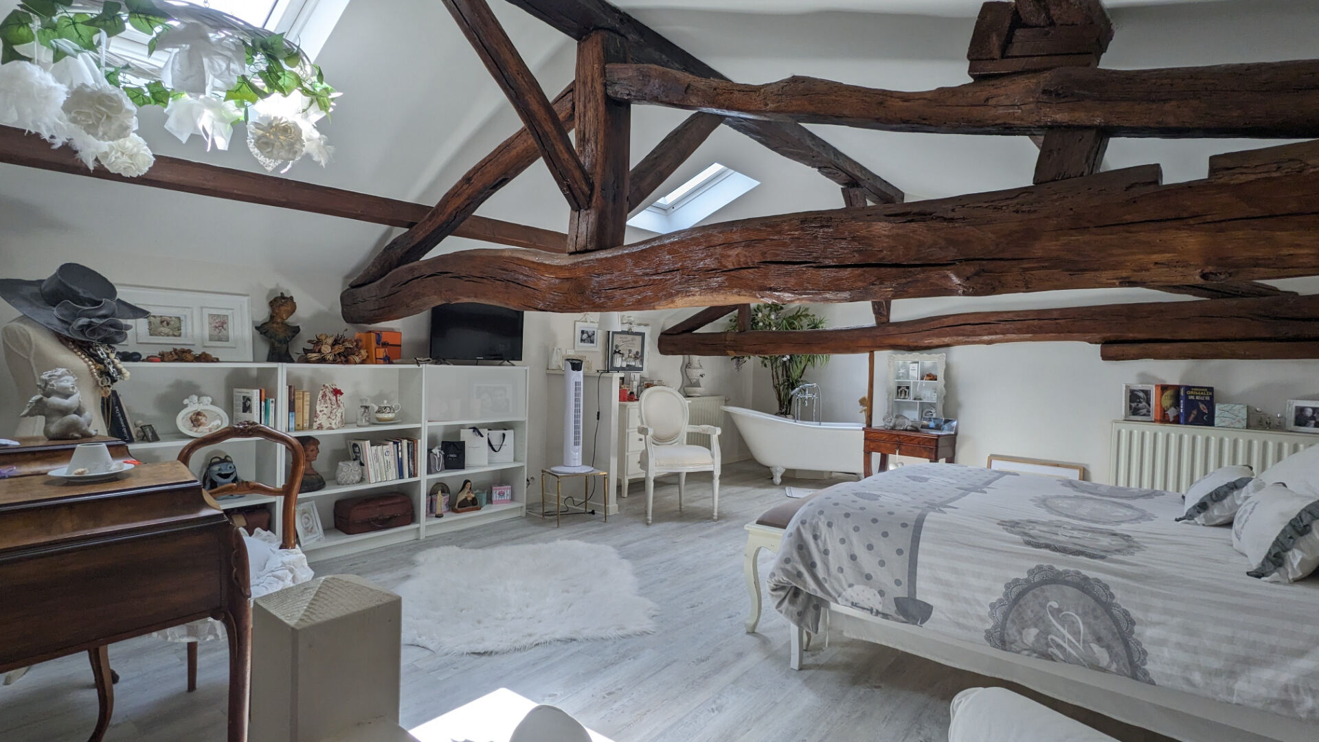 ... 1 bureau, 1 mezzanine, grenier, Wc, 1 salle de bains avec baignoire et douche, double vasque. Grand...