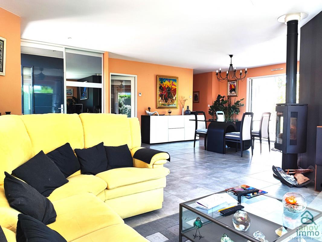 ... et lumineuse maison récente de plain pied offrant , séjour double avec baies vitrées donnant sur te...