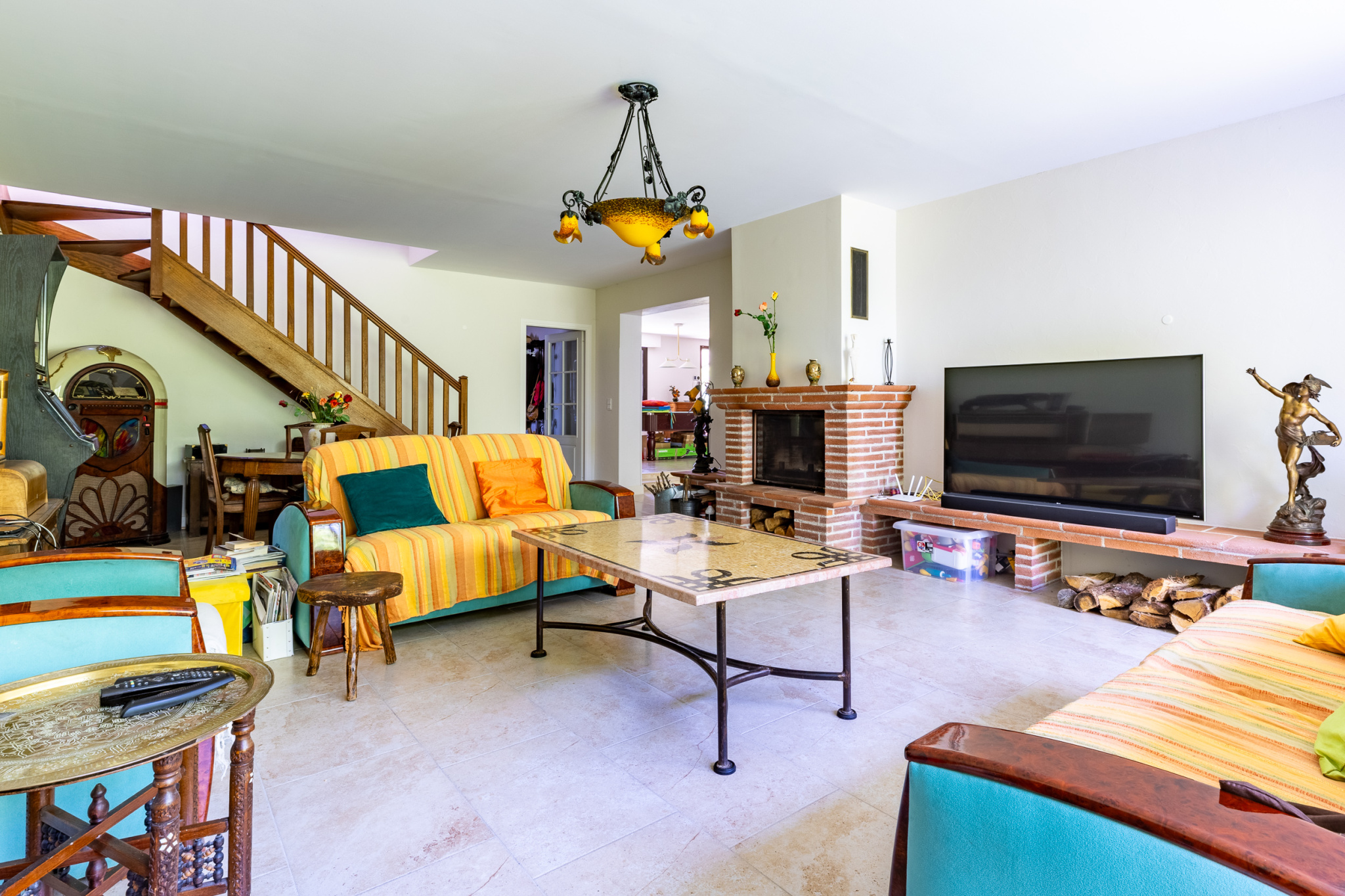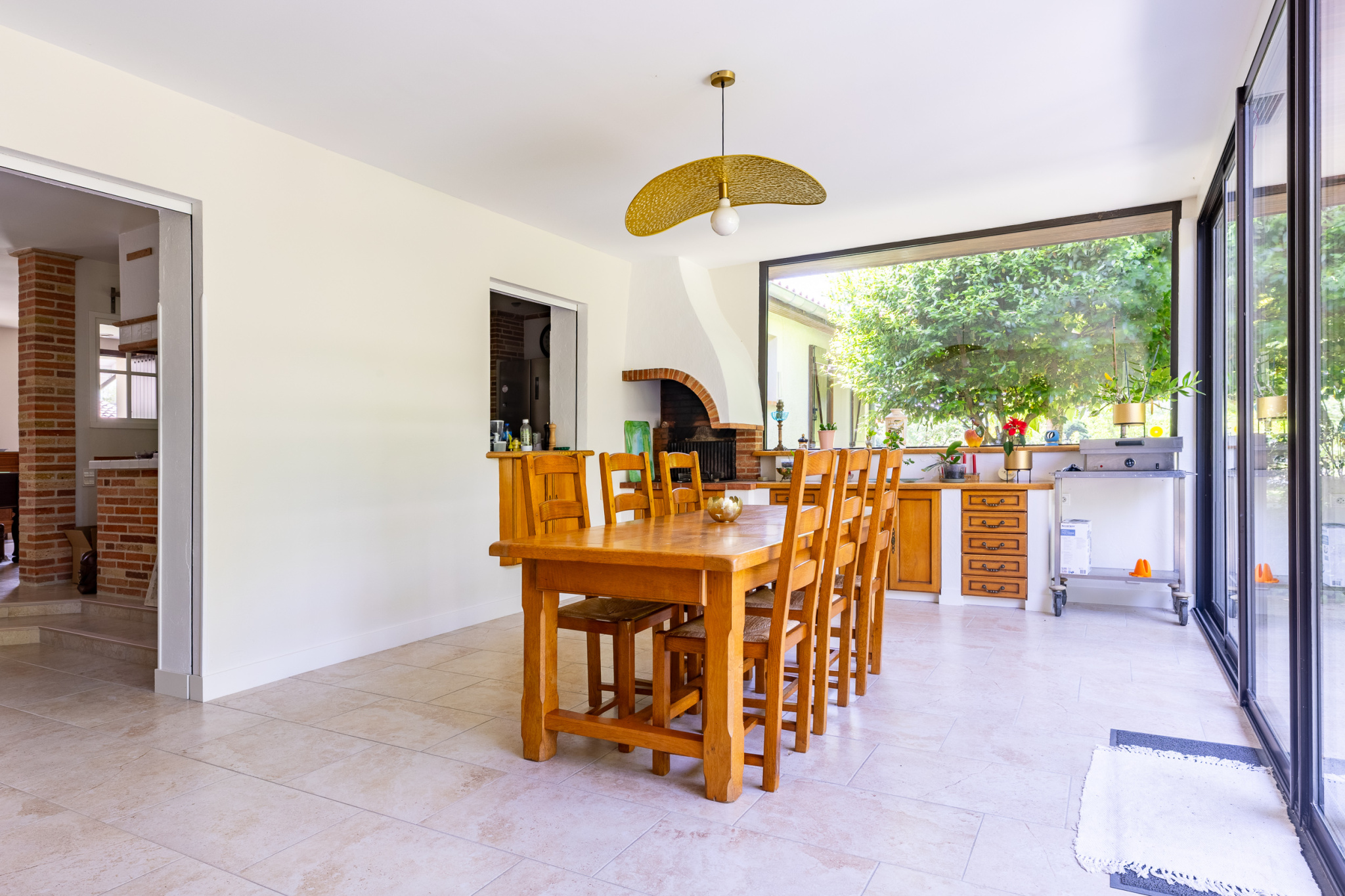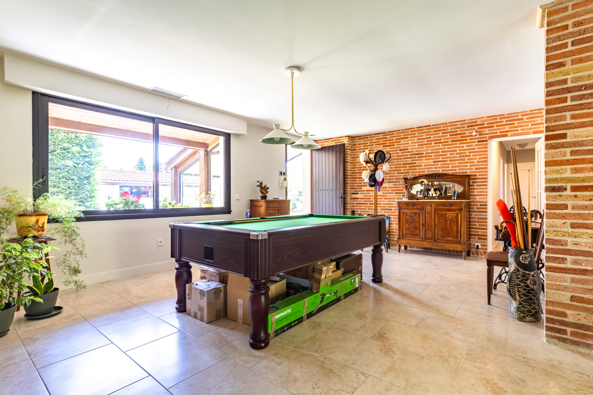 ...l'entrée dessert une salle de billard d'environ 30 m2 qui donne sur une cuisine américaine...