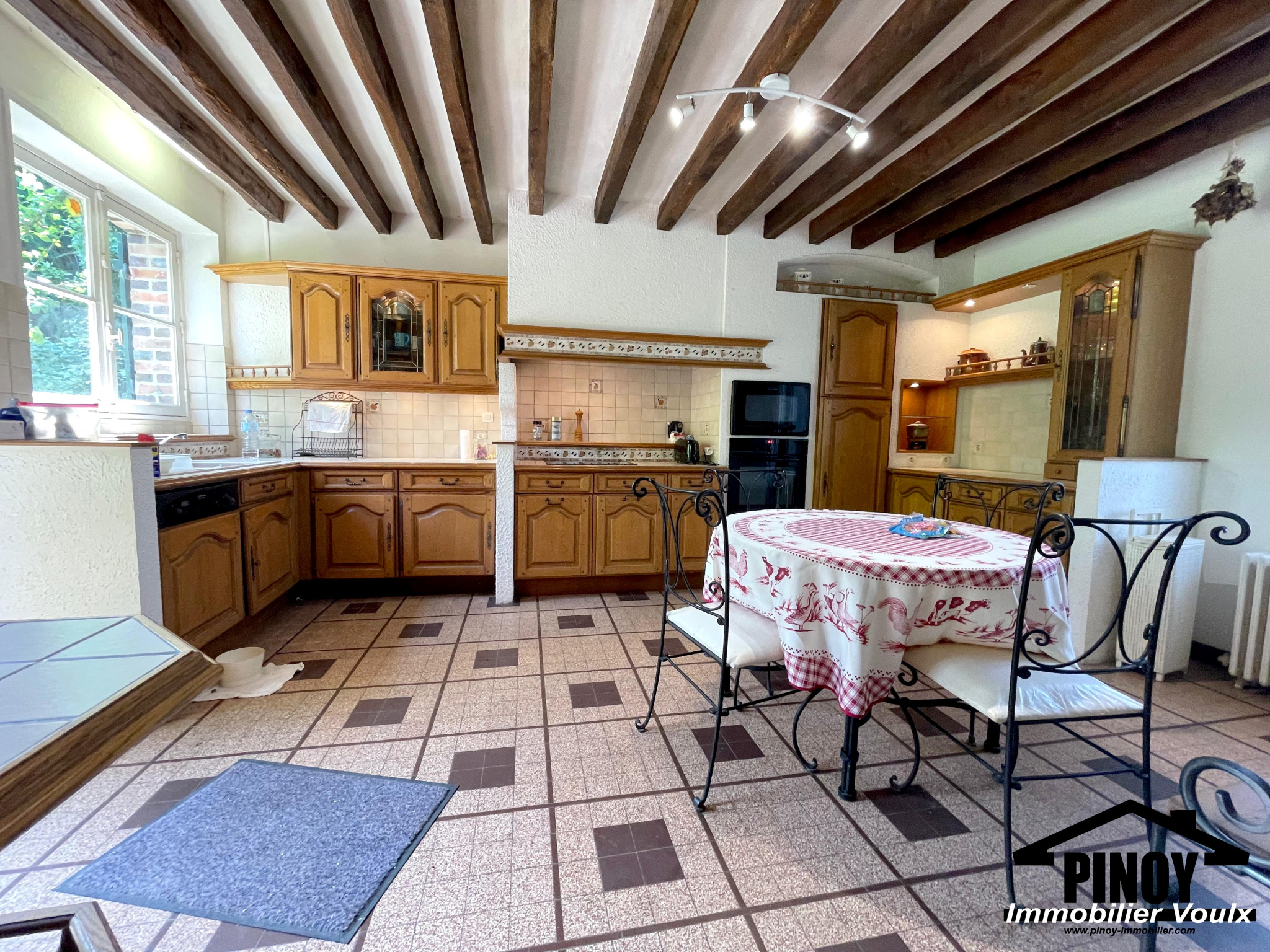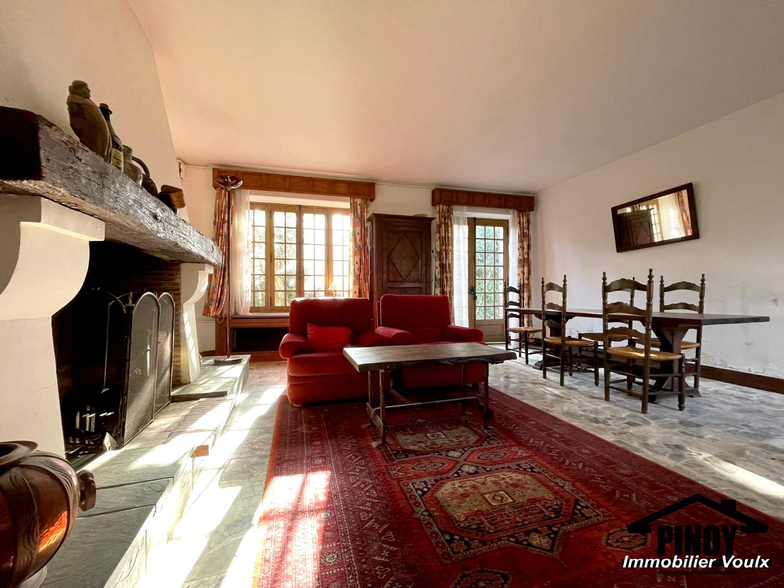 ...Au rez de chaussée : Cuisine dinatoire, salle à manger avec poele à bois, salon avec cheminée...