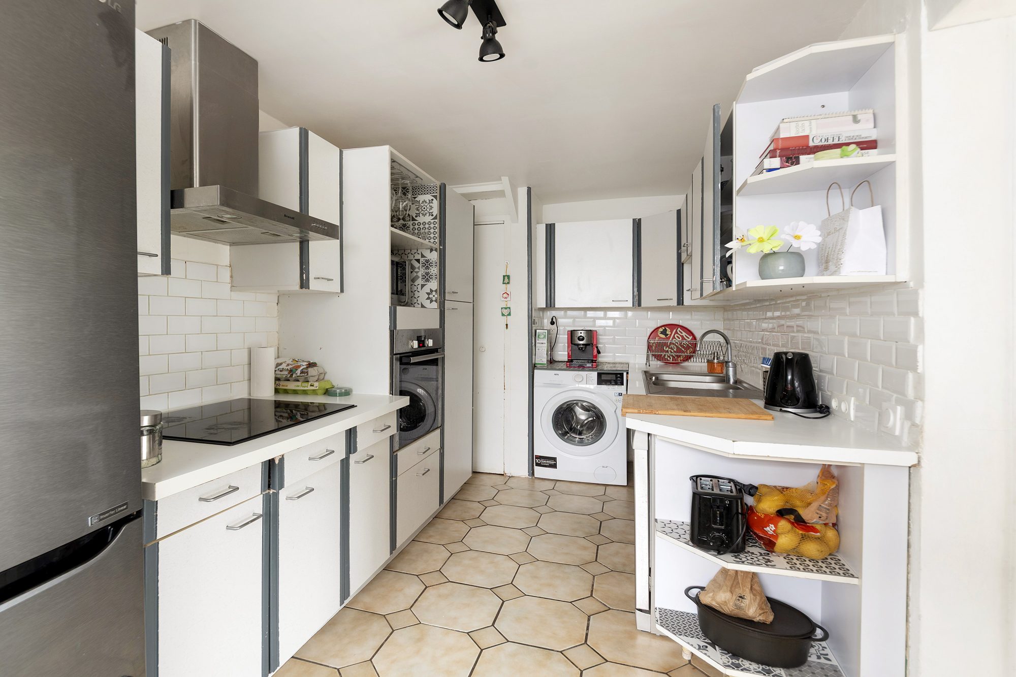 ...Vous serez séduit par un salon lumineux avec cuisine aménagée ouverte, formant un espace...