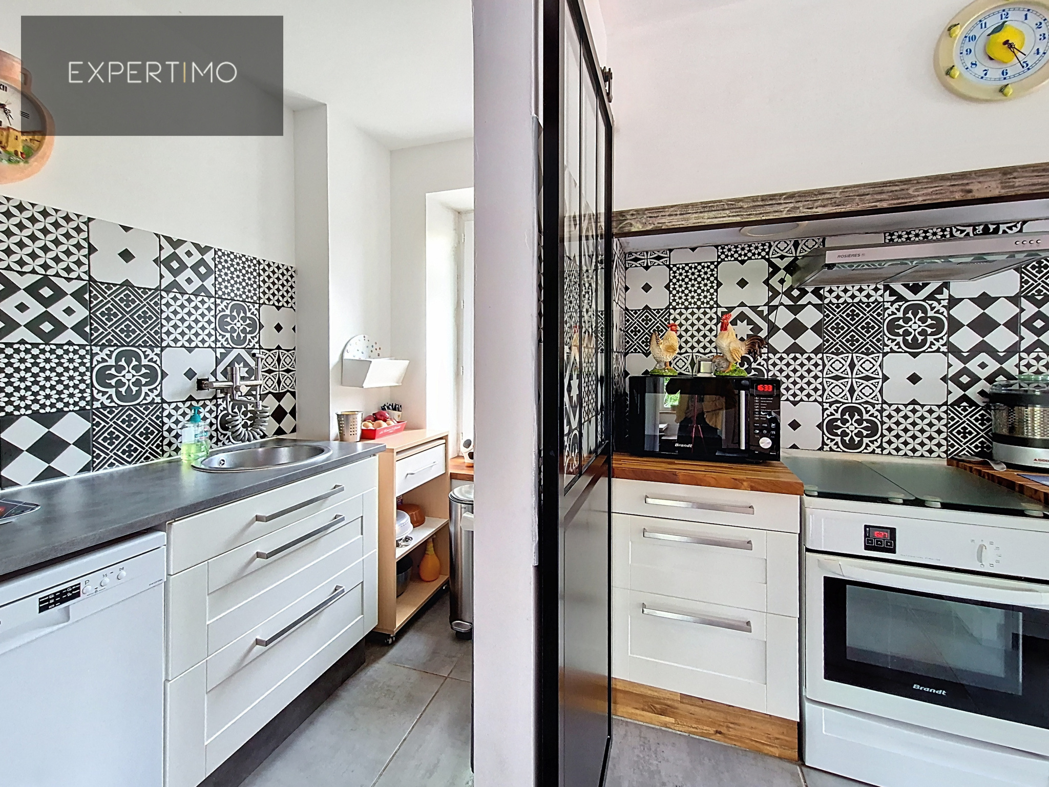 ...Le séjour, entièrement rénové, accueille une cuisine ouverte moderne prolongée par une...
