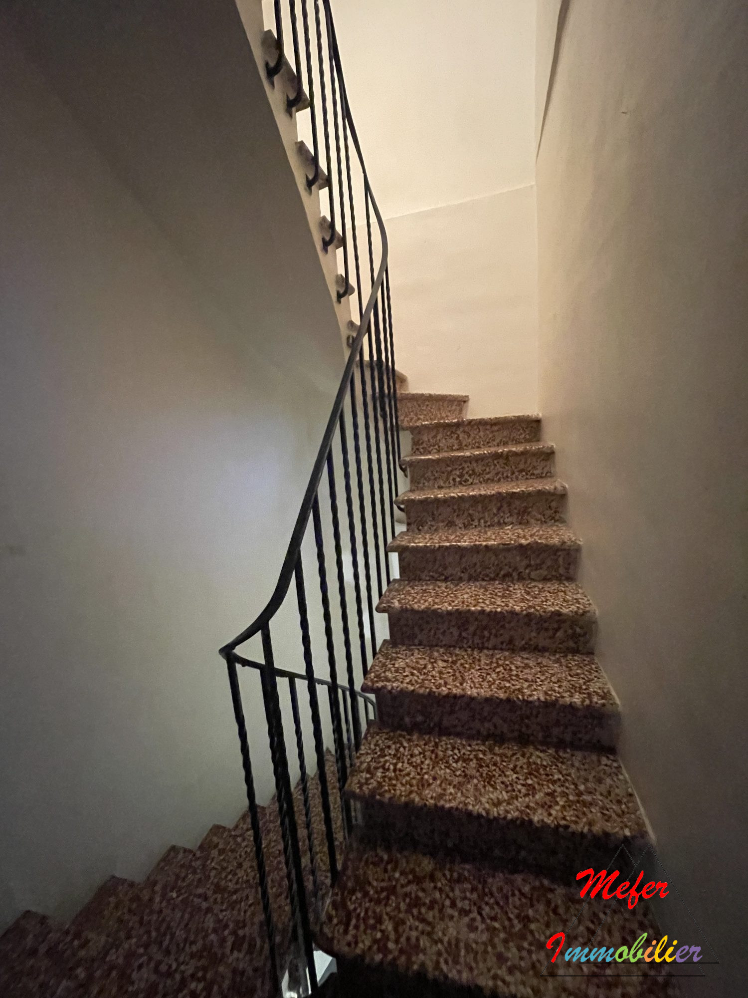...Avec ses carreaux de ciment, son escalier en fer forgé et ses moulures, elle offrira un cachet...