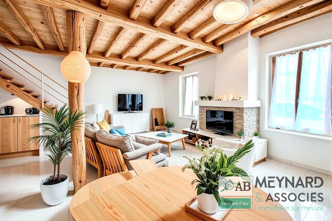 ...Avec ses poutres apparentes et son ambiance chaleureuse, elle offre de beaux volumes et de...