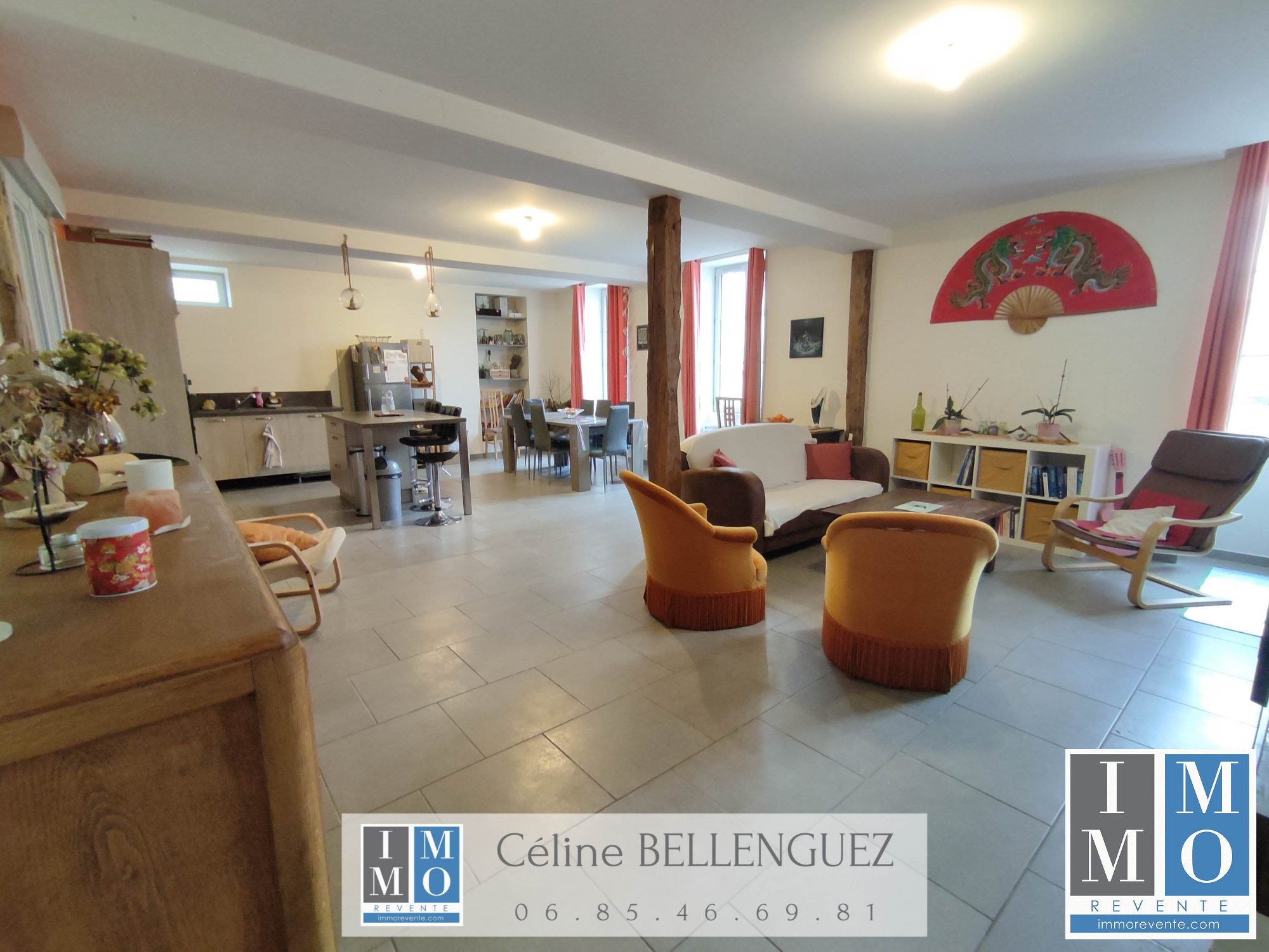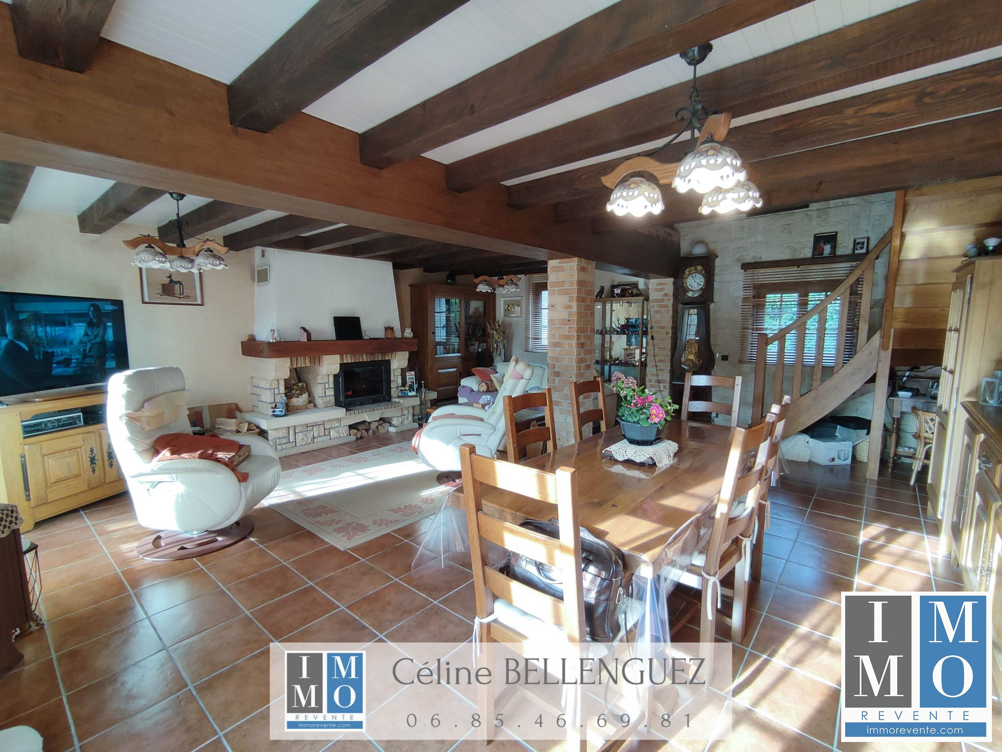 ...L'entrée distribue un salon/séjour avec cheminée d'apparat, une cuisine spacieuse et lumineuse...