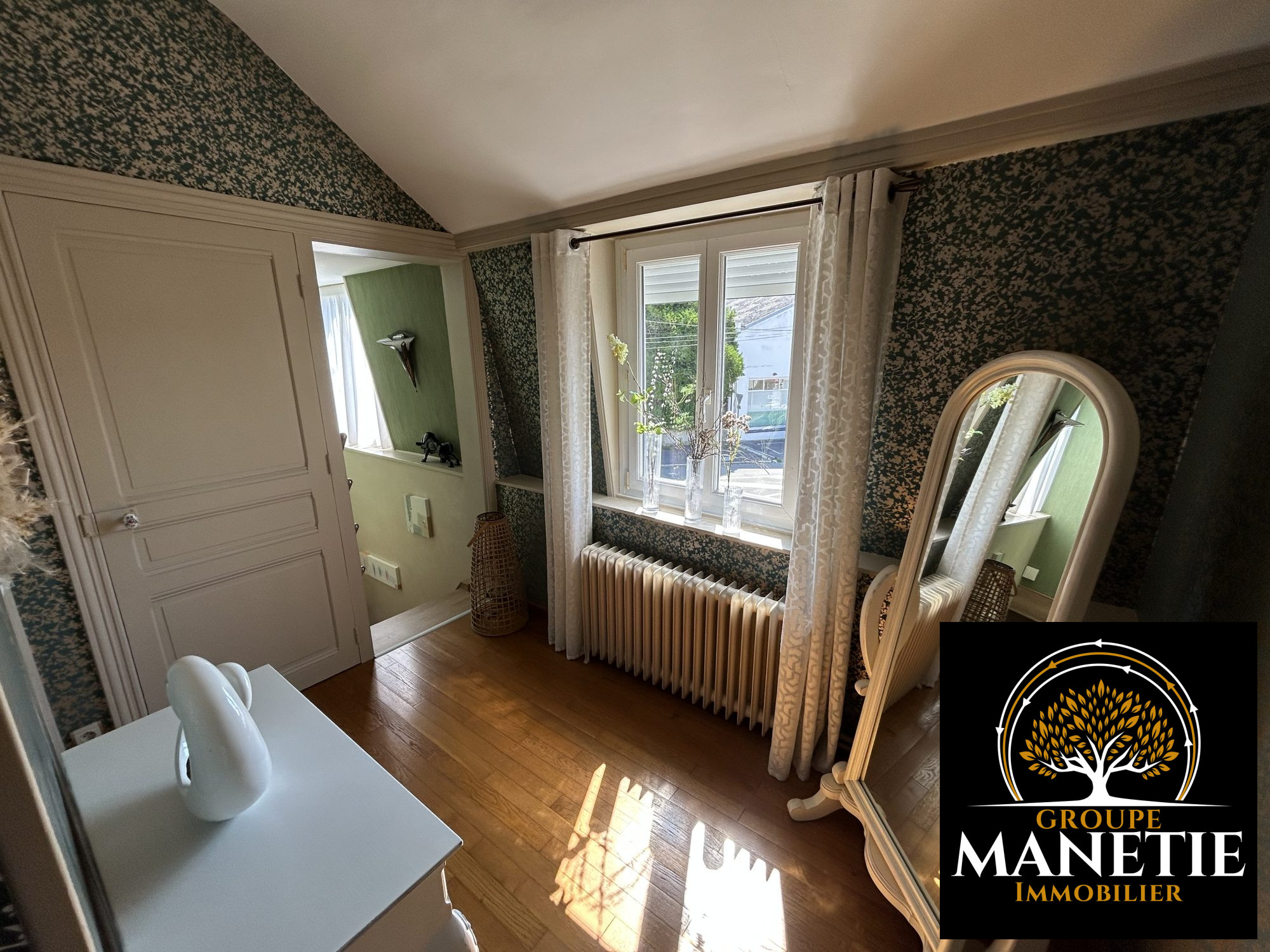 ...A l'étage : 3 grandes chambres avec un parquet en bois massif ainsi qu'une salle de bain...