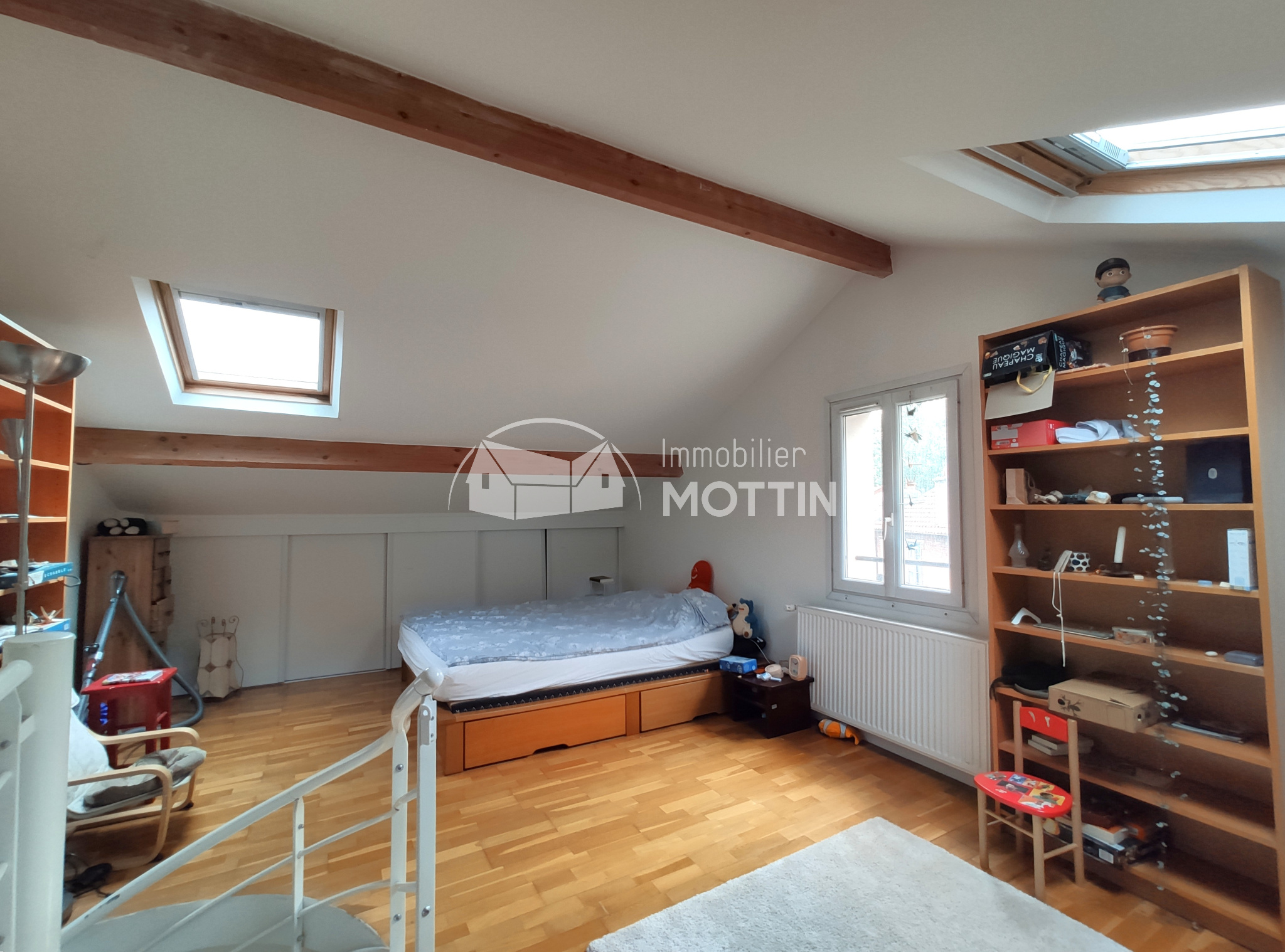 ...L'étage offre deux chambres dont une grande ainsi qu'une belle salle de bains...