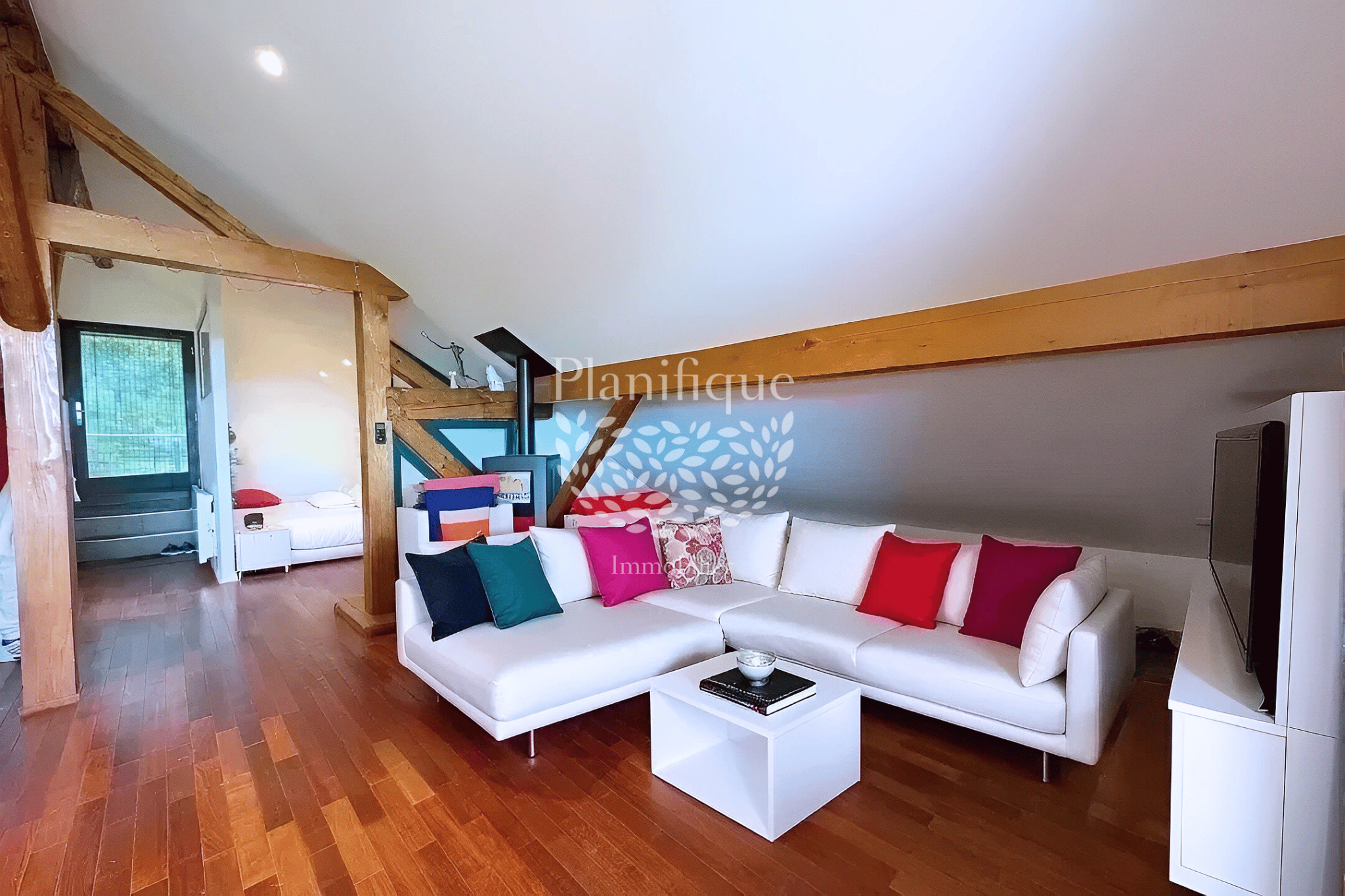...Cet espace accueille également un salon confortable, une salle d'eau et des toilettes...