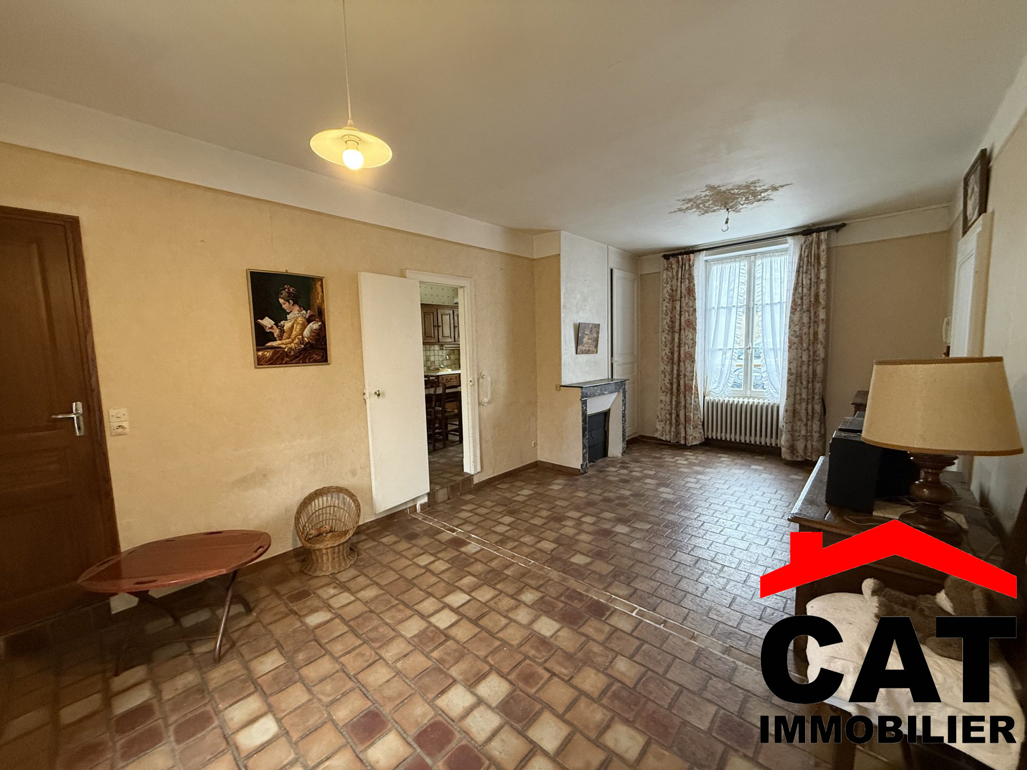 ...Fenêtres en bois silmple vitrage, chauffage fuel, tout à l'égout, fibre sur rue...