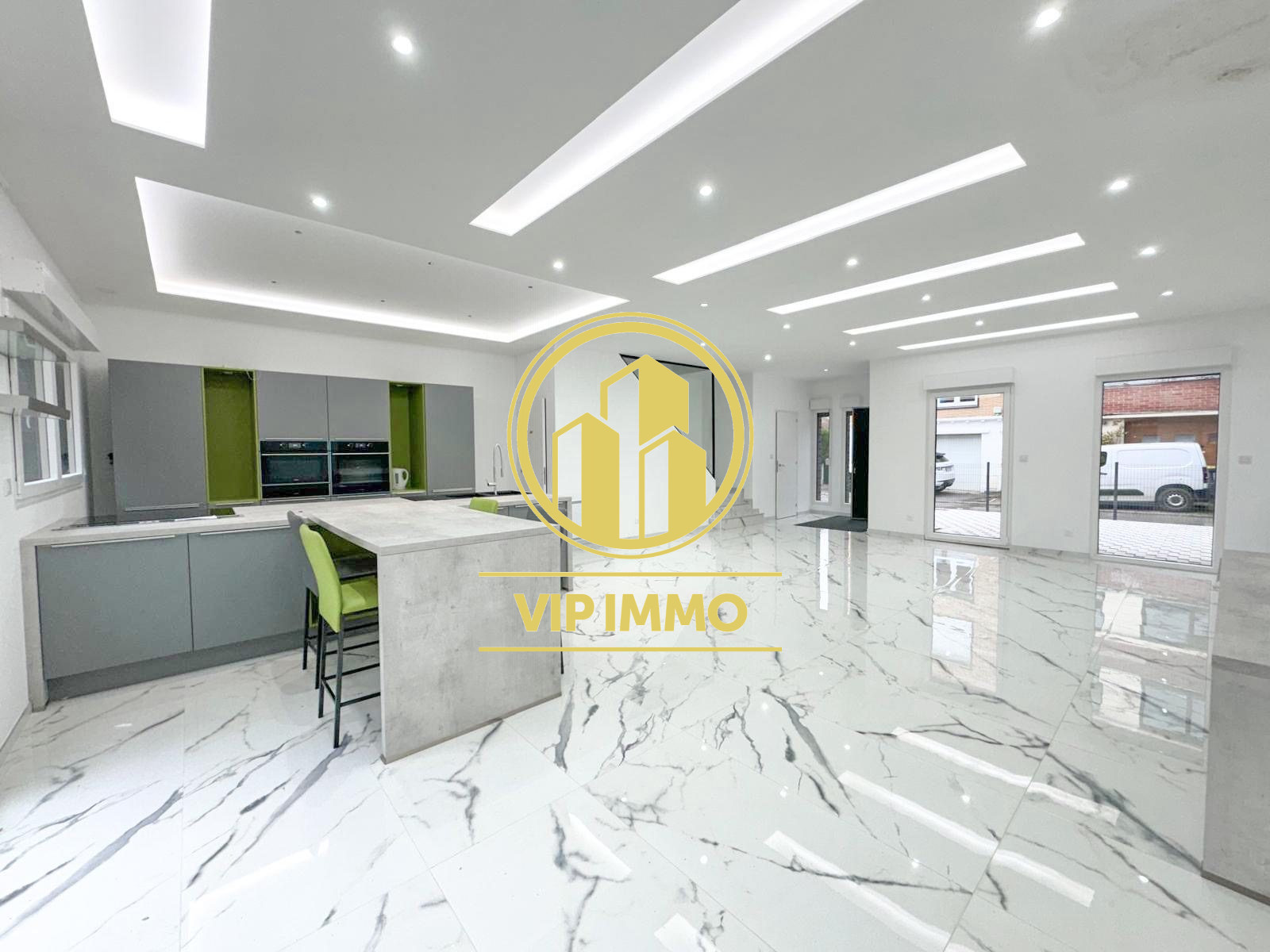 ... devanture avec place de stationnement privative donnant sur l'entrée Celle-ci desservira le salon-...
