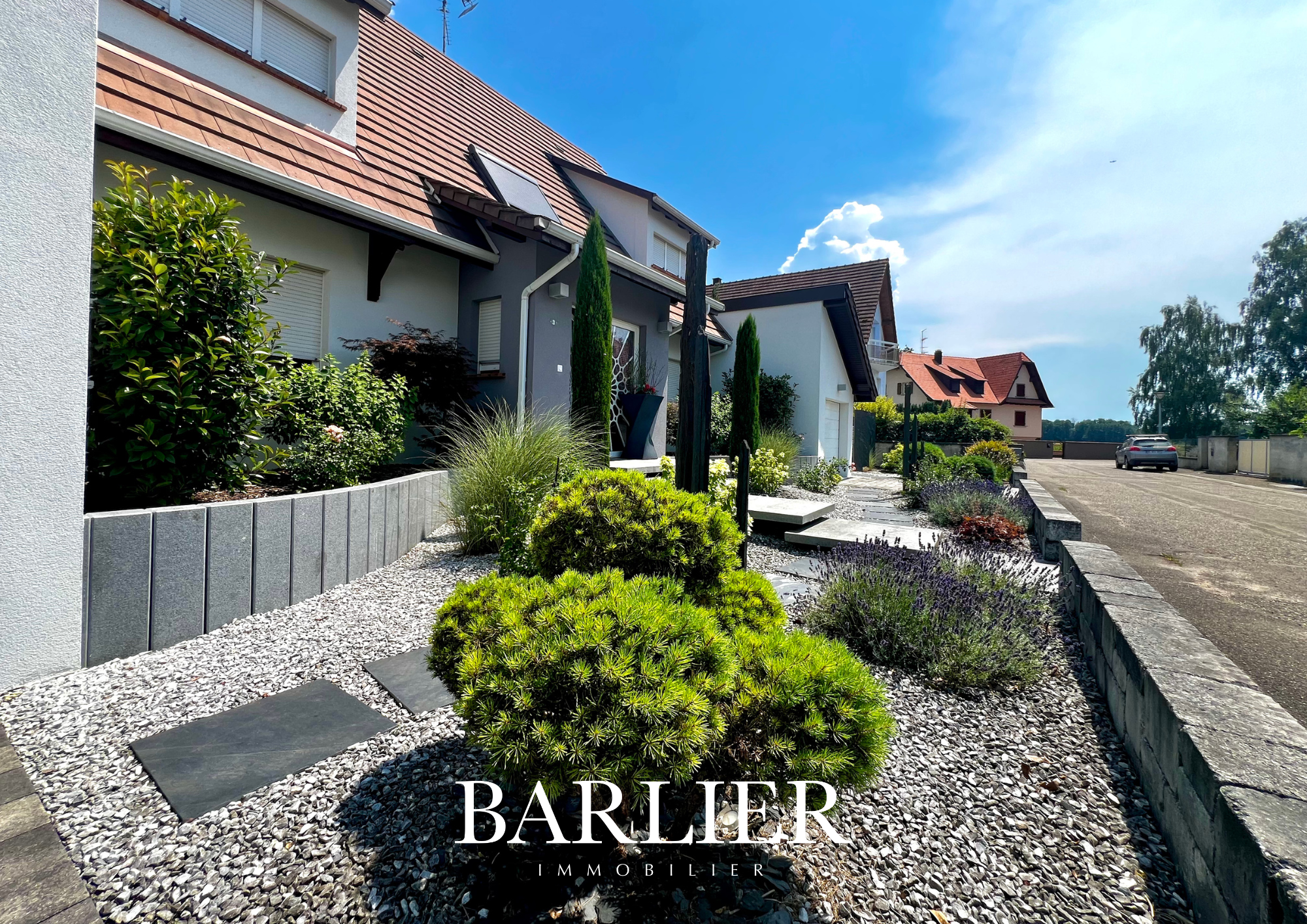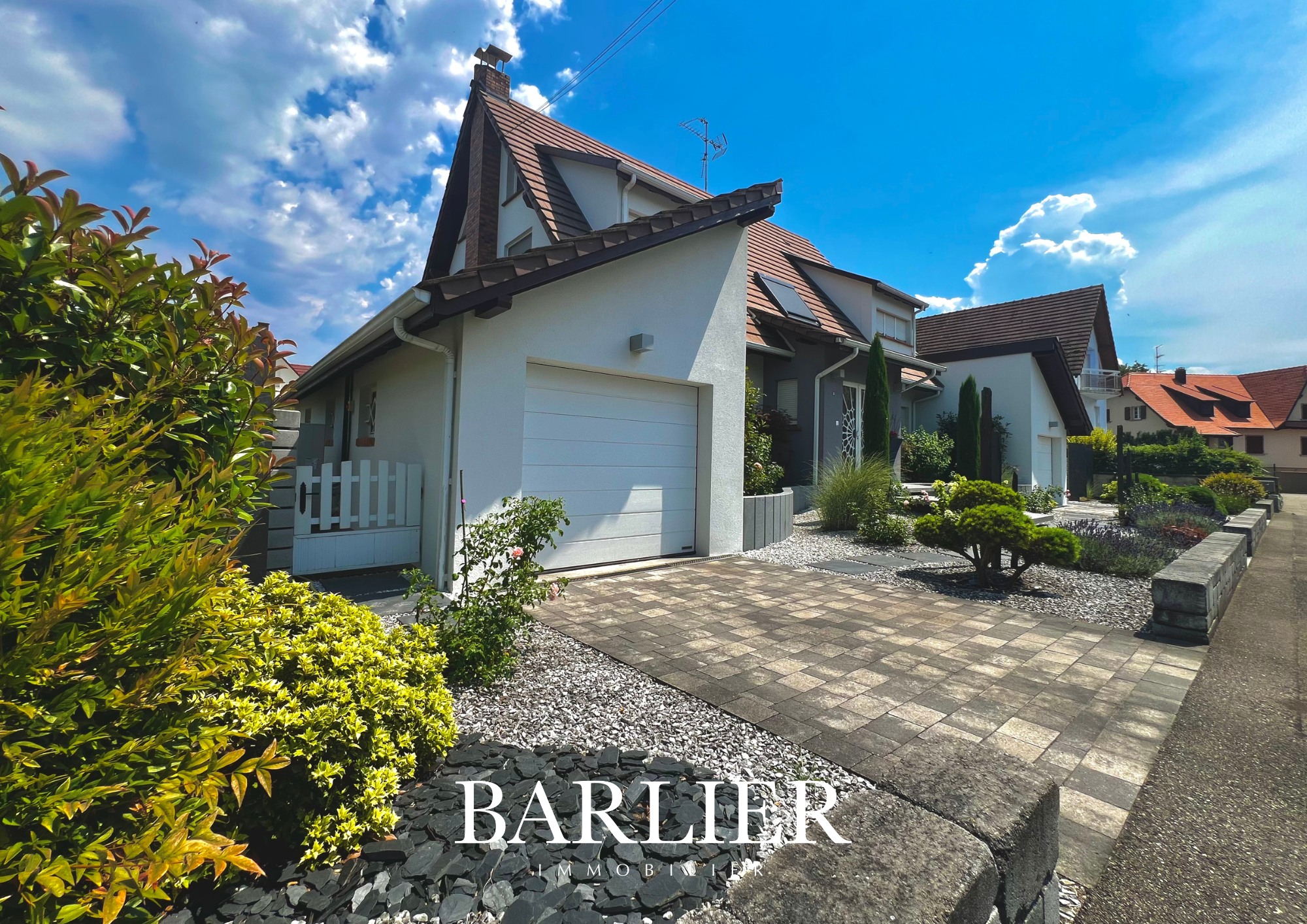 ...Érigée sur un terrain de 599 m2 paysagé avec soin, cette maison de 195 m2 au sol (181 m2...