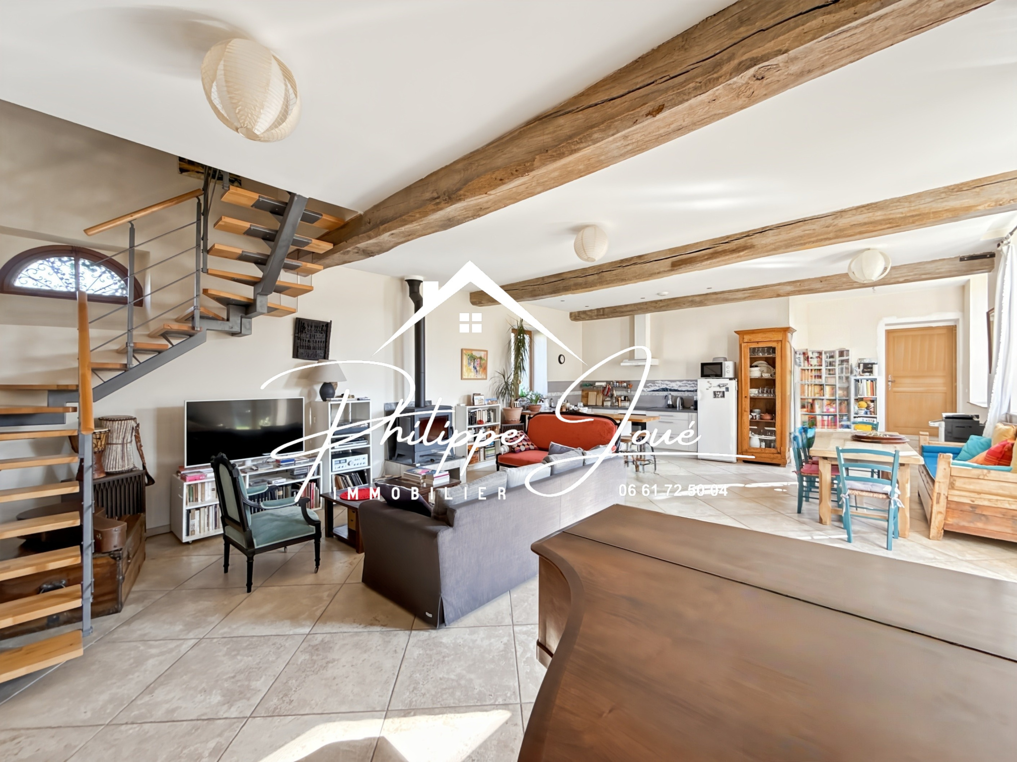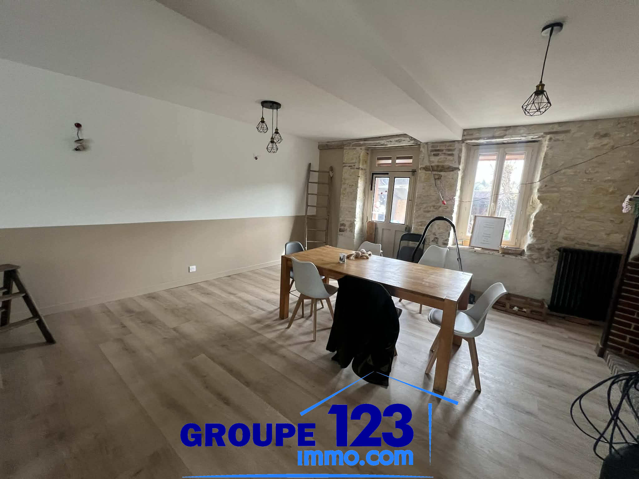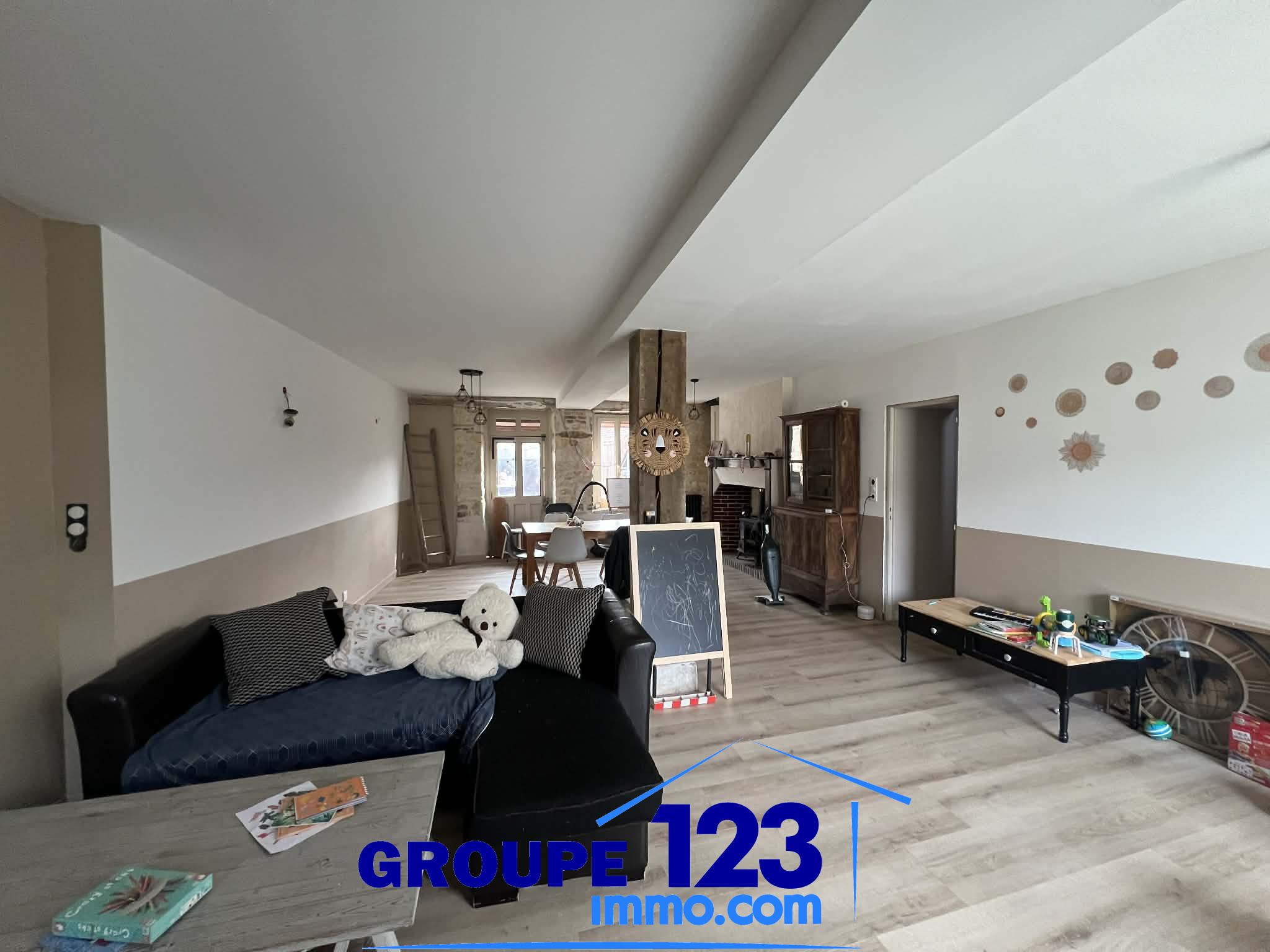 ...Vous profiterez d'une belle pièce de vie lumineuse de 45 m2 avec poêle à bois, idéale pour des...