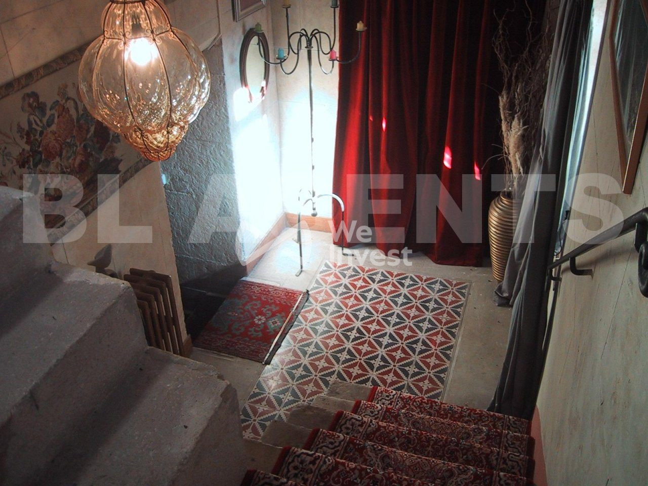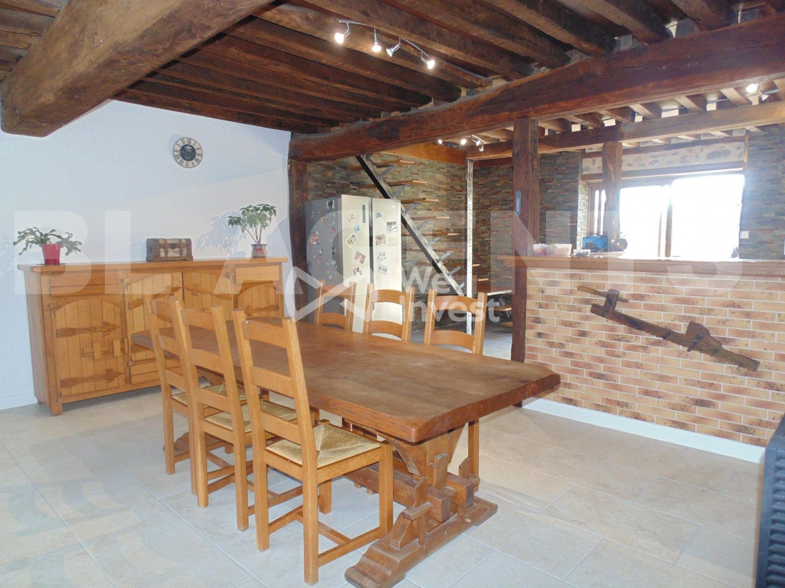 ...Sols en pierre de taille d'origine, plafonds à la Française,poutres de chênes et fines solives...