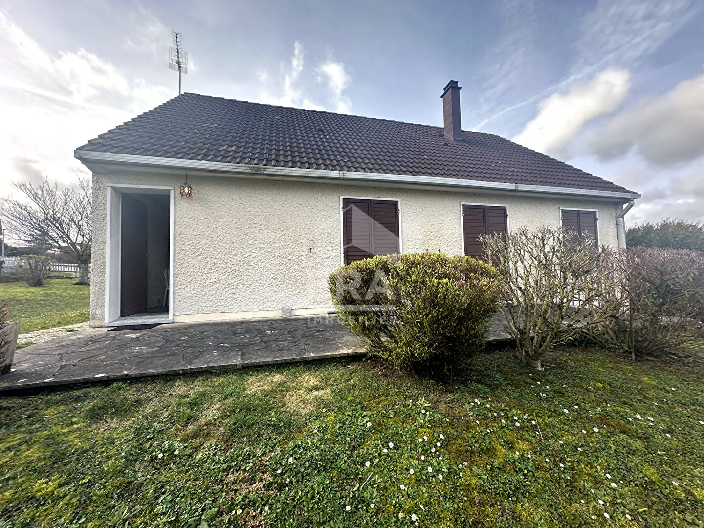 ...Fenêtres en bois double vitrage, tout à l'égout, chauffage électrique, cheminée, terrasse, fibre,...