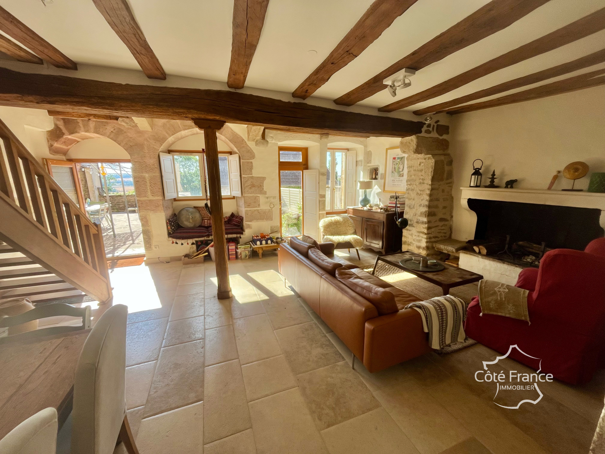 ... l'étage, une mezzanine distribue trois chambres confortables et une salle d'eau avec WC, offrant un...