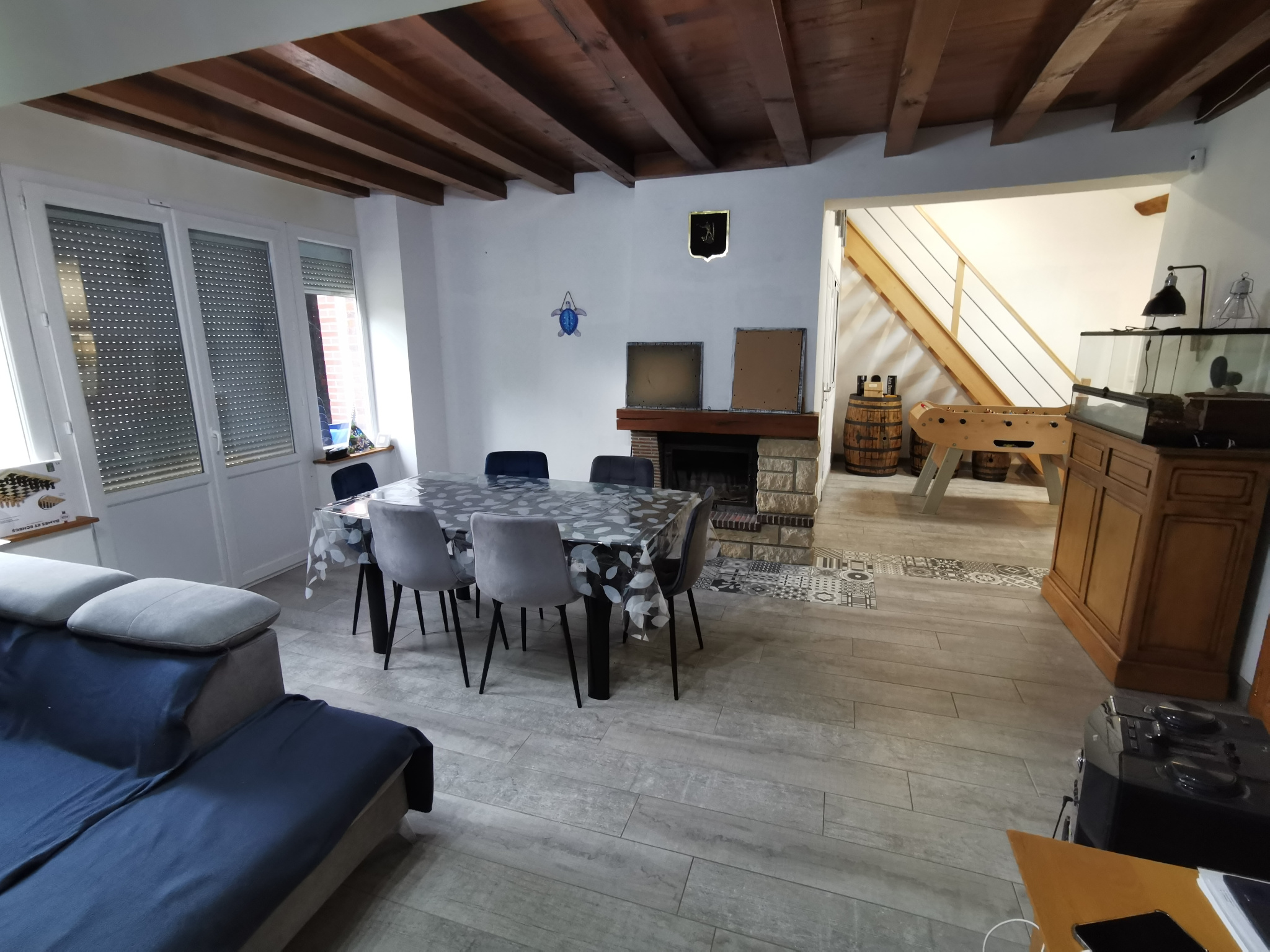 ...Description du bien :Rez-de-chaussée : entrée sur un salon-séjour avec cuisine ouverte et...