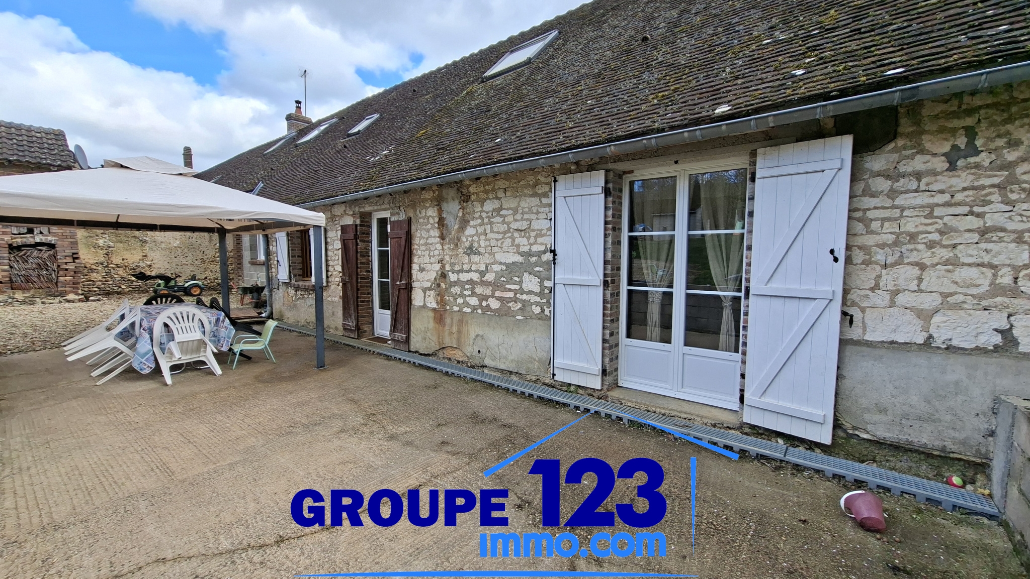...Dès l'entrée, une belle terrasse couverte par une treille de vigne vous accueille...