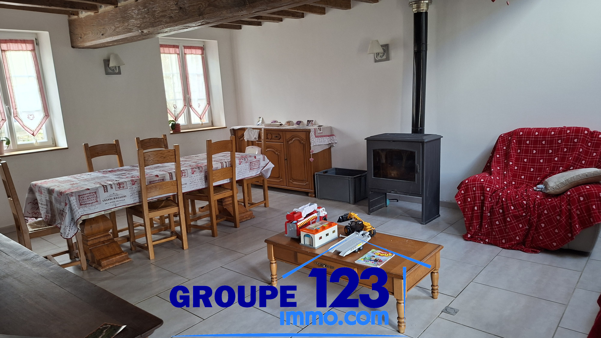 ...Elle offre au rez-de-chaussée une entrée avec carrelage ciment, un séjour lumineux avec du...