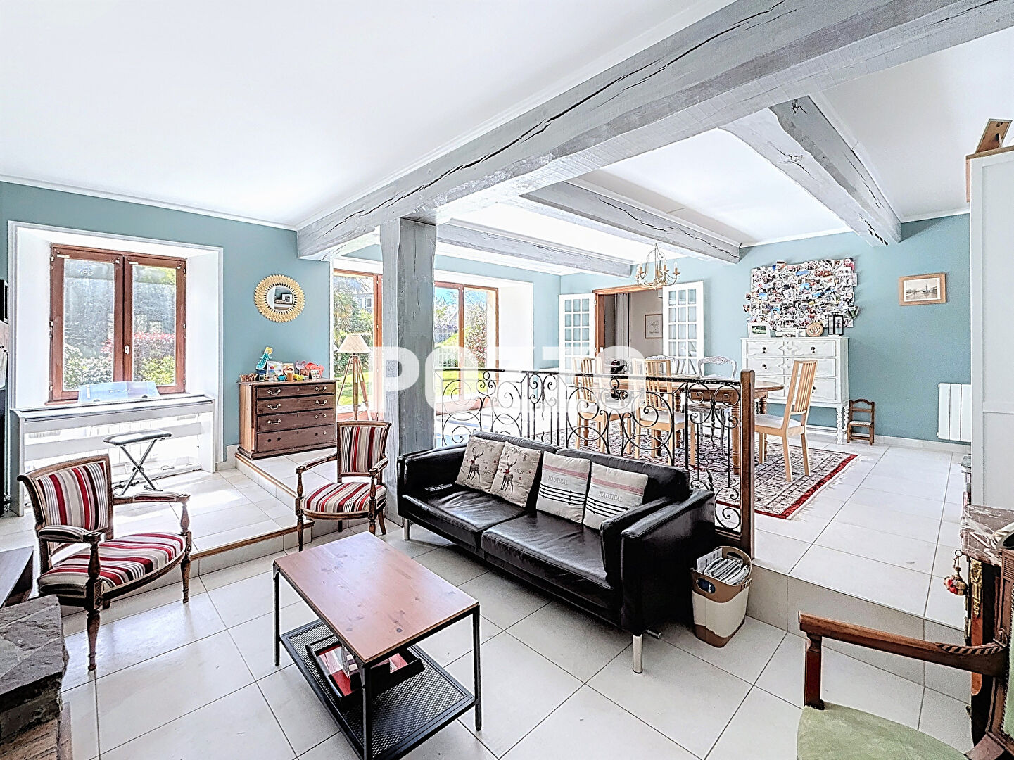 ...- A l'étage : palier, couloir desservant 5 chambres, un bureau, un dressing, une salle d'eau, une...