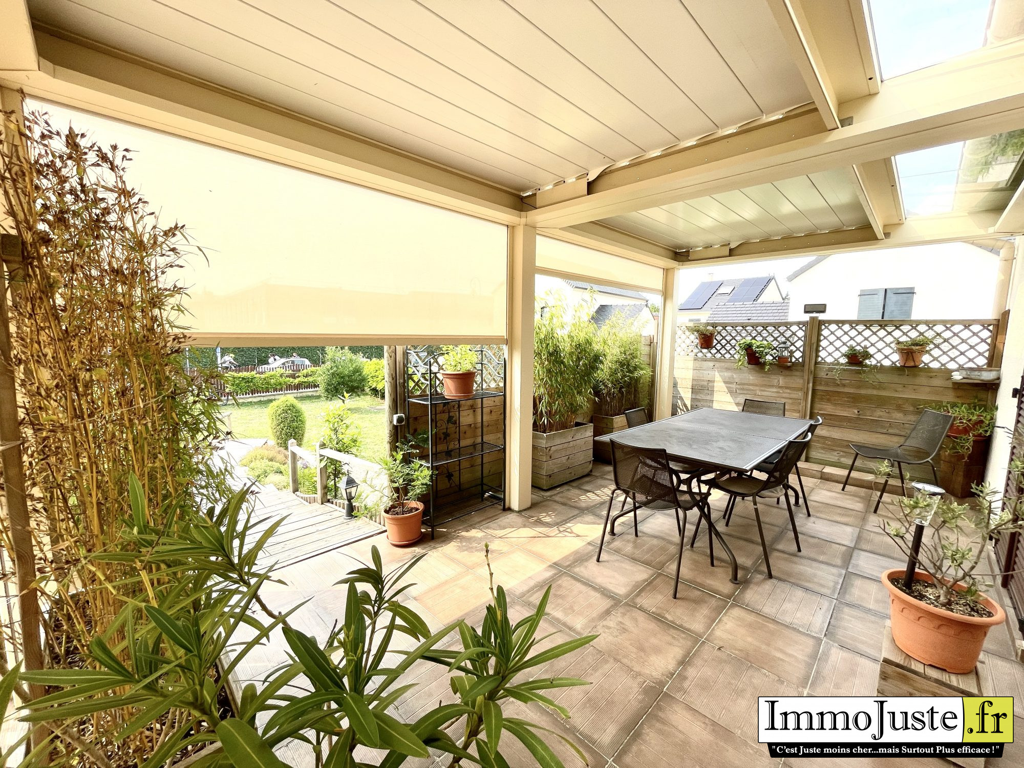 ... d'une pergola bioclimatique électrique exposée à l'ouest. La visite se poursuit avec une salle de d...