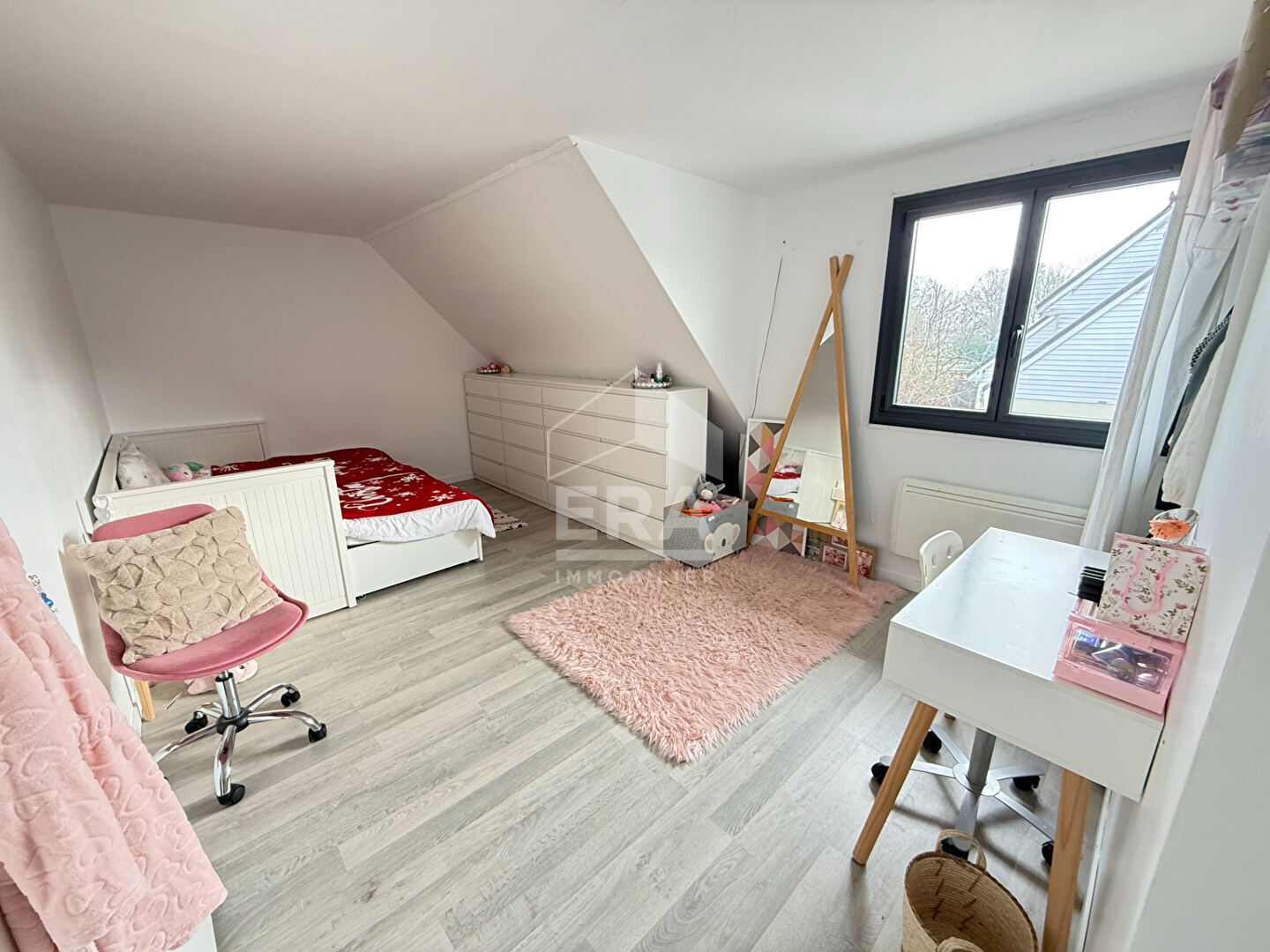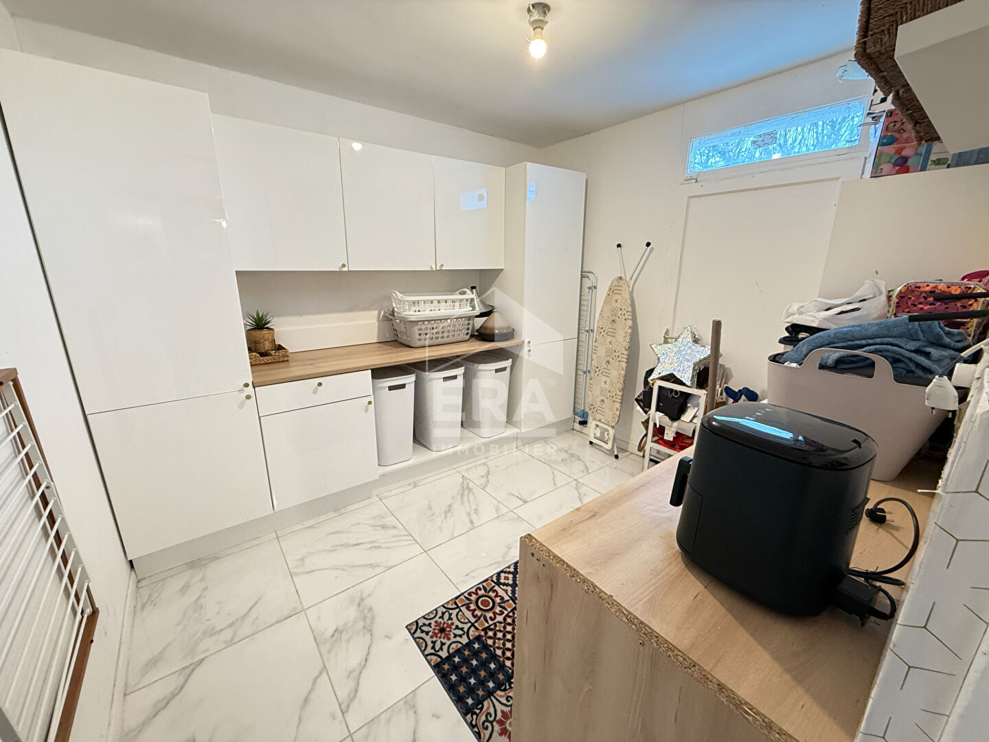 ... entrée avec placards mène une belle pièce d'environ 26m² (salon TV, salle de jeux, bureau,) avec ac...