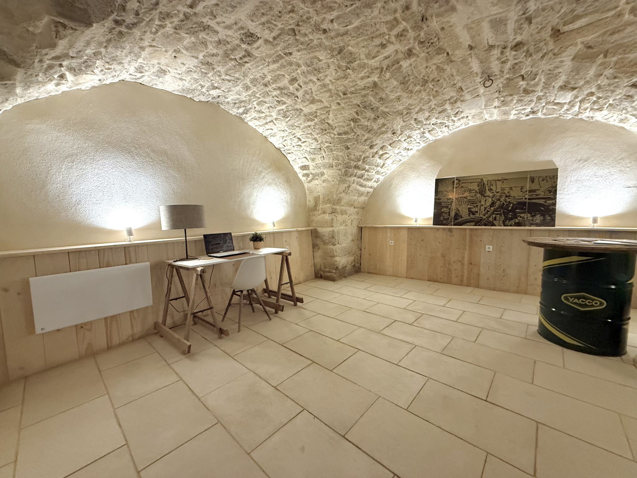 ...La cave dispose de l'électricité, de la fibre, de toilettes sèches, ainsi que de deux radiateurs...