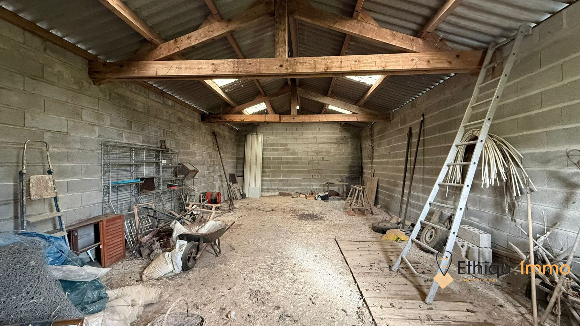 ...Le bâtiment, de 13 m x 6 m, dispose d'une toiture en fibrociment et offre un accès facile pour...