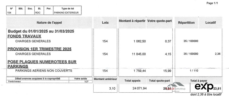 Vente stationnement