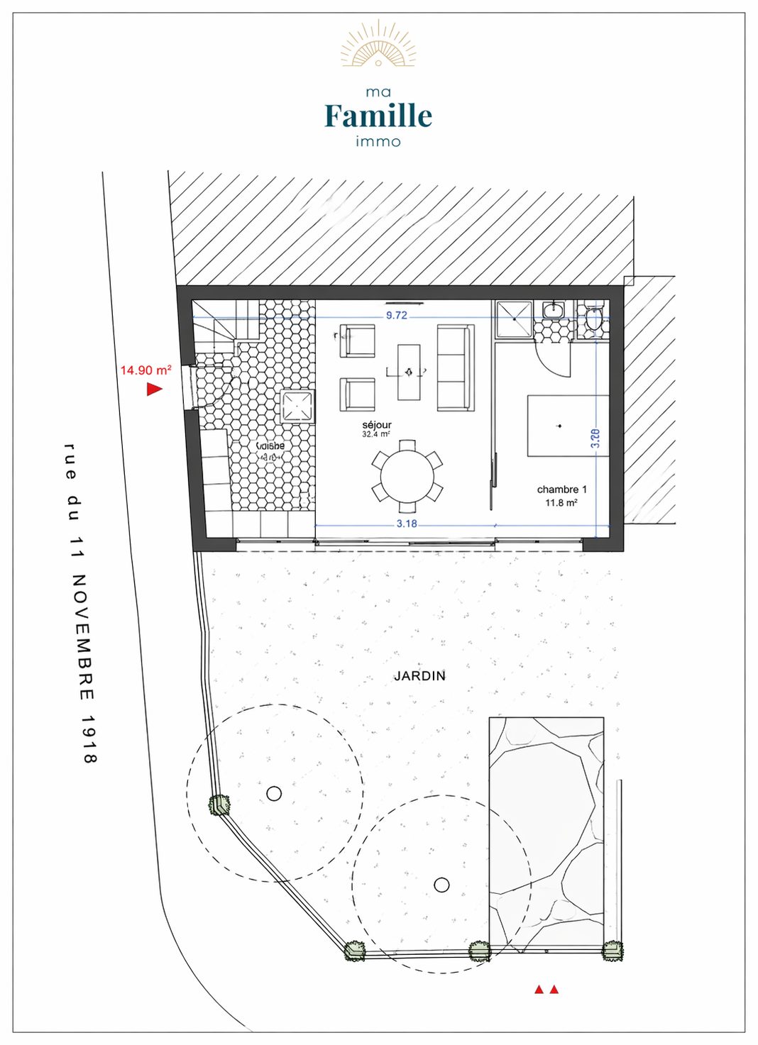 ...Implanté en angle de rue, ce terrain de 148 m² bénéficie d'une configuration idéale, offrant à la...