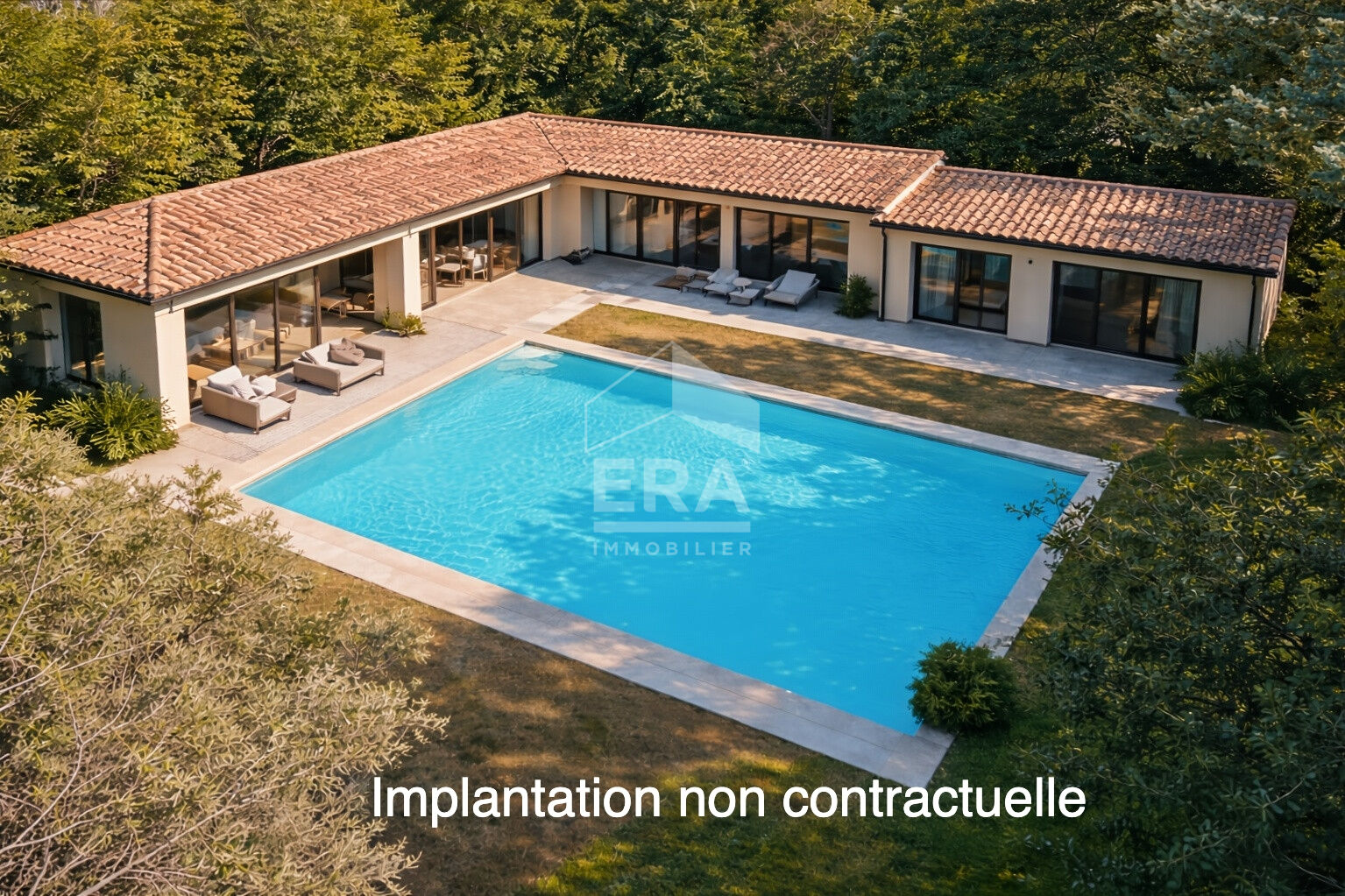 ...Terrain plat et arboré, bien exposé disposant d'une piscine déjà existante...