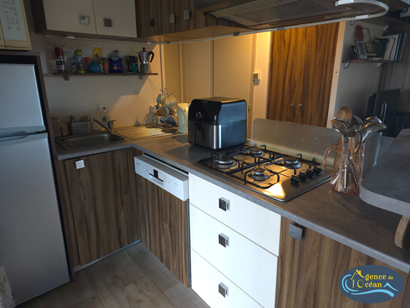...En plus, une terrasse en bois, couverte, de 30 m² et un abri de jardin...