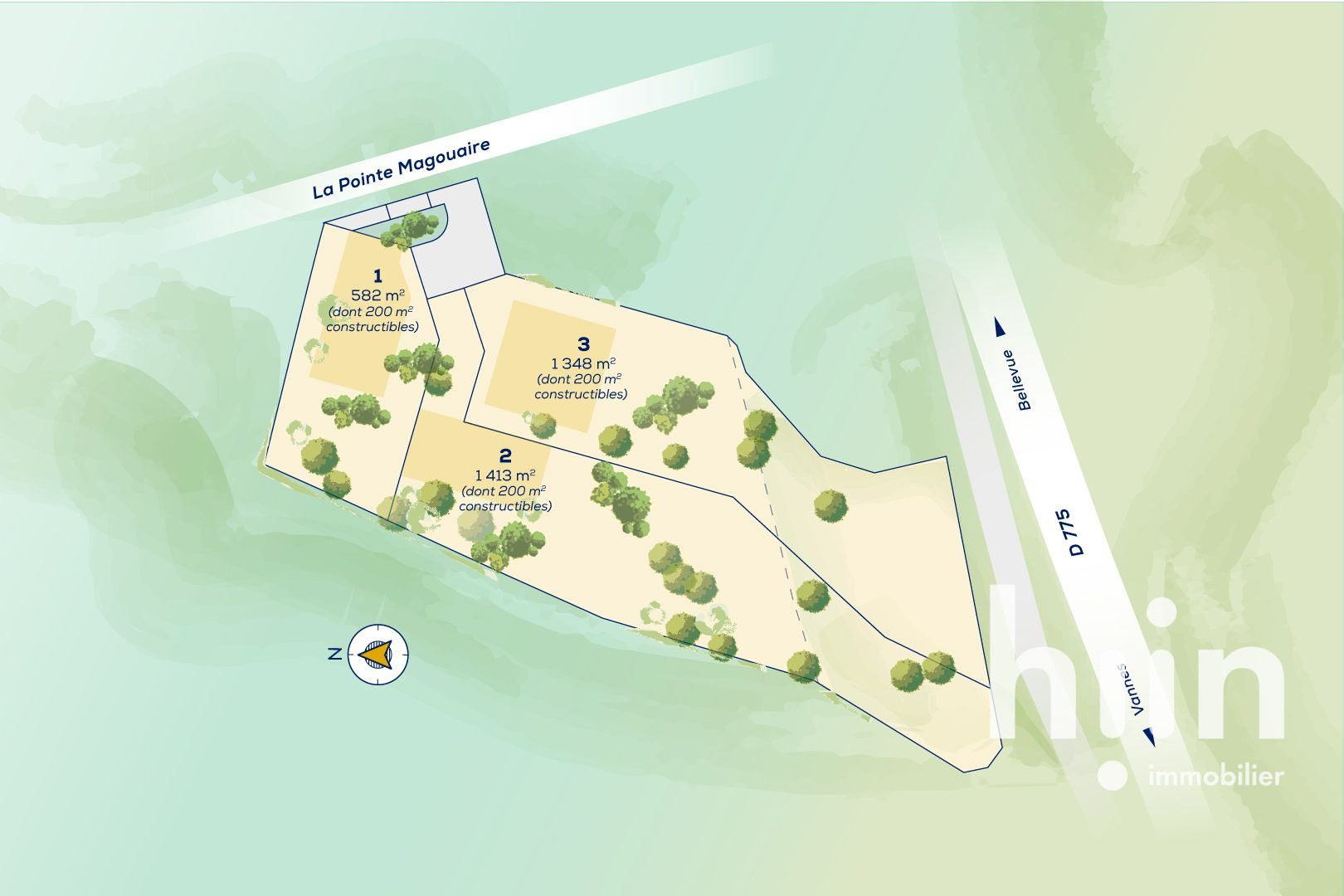 ...Seulement 3 terrains viabilisés, de 582 à 1 413 m2, libres de constructeurHonoraires inclus de ...