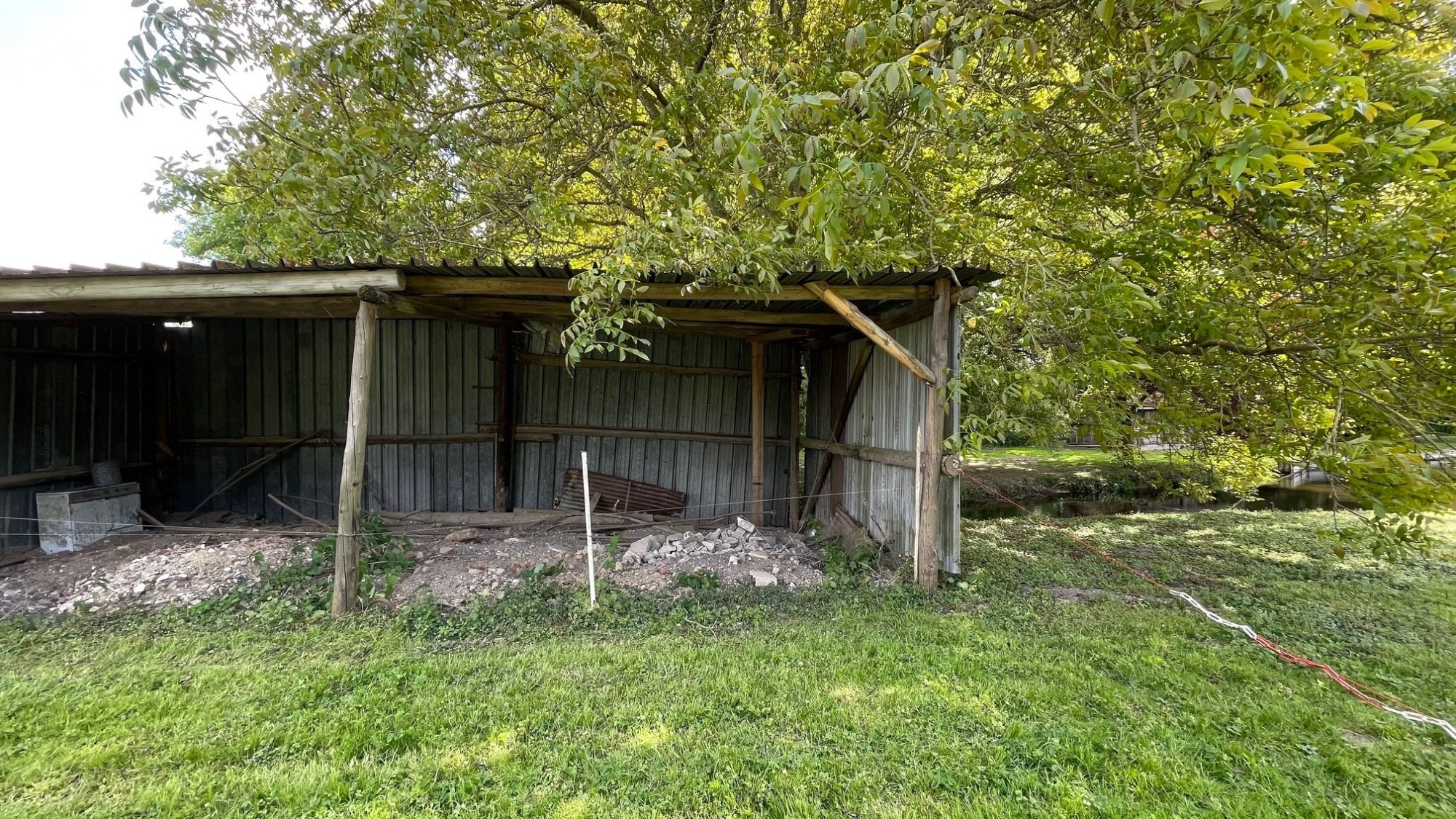 ...Equipée d'un compteur d'eau, reste à se raccorder au Tout A l'Egout et à l'électricité qui passe...