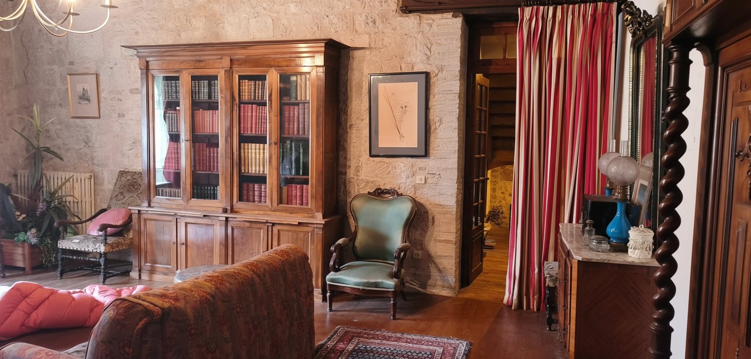 ...Développant environ 398 m² habitables, l'ensemble se compose de deux bâtisses attenantes...