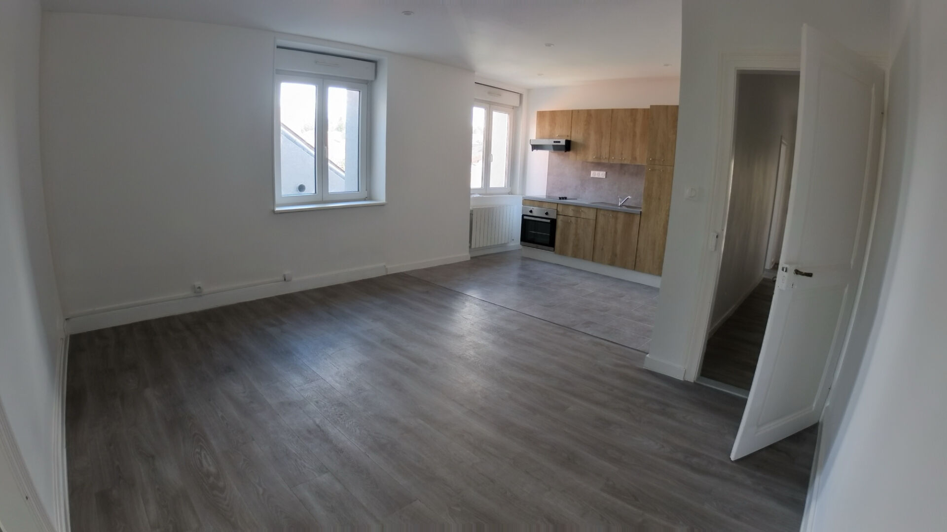 BRUNSTATT : Proche du centre et de ces commodités ! Nous vous proposons à la location cet appartement type 2 pièces de 53,20m2. Il est situé au premier étage d'un petit immeuble de 4 logements. Il se compose d'une entrée desservant une salle d'eau avec meuble vasque, douche et W.C. Un beau séjour / salle à manger lumineux avec ouverture sur la cuisine équipée. Ainsi qu'une chambre. L'appartement est loué avec 2 places de parking, une cave et un jardin commun. Charges mensuelles prévisionnelles de 85 euros comprenant l'entretien des parties communes, la taxe des ordures ménagères et l'eau froide.