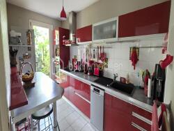 Une entrée qui donne sur une belle pièce de vie entouré de fenêtre suivit de sa cuisine tout équipé vous permettront un agencement confortable.