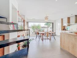 ? Grand espace de vie lumineux avec cuisine aménagée et équipée ouverte.