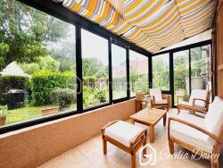 - Une véranda en aluminium lumineuse, spacieuse et accueillante, permettant une sortie sur le jardin des 2 côtés