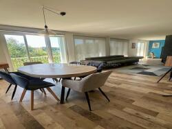 **Vastes volumes :** Profitez d'un vaste séjour/salon lumineux avec une vue dégagée, agrémenté d'un poêle à bois, parfait pour des moments de convivialité en famille.