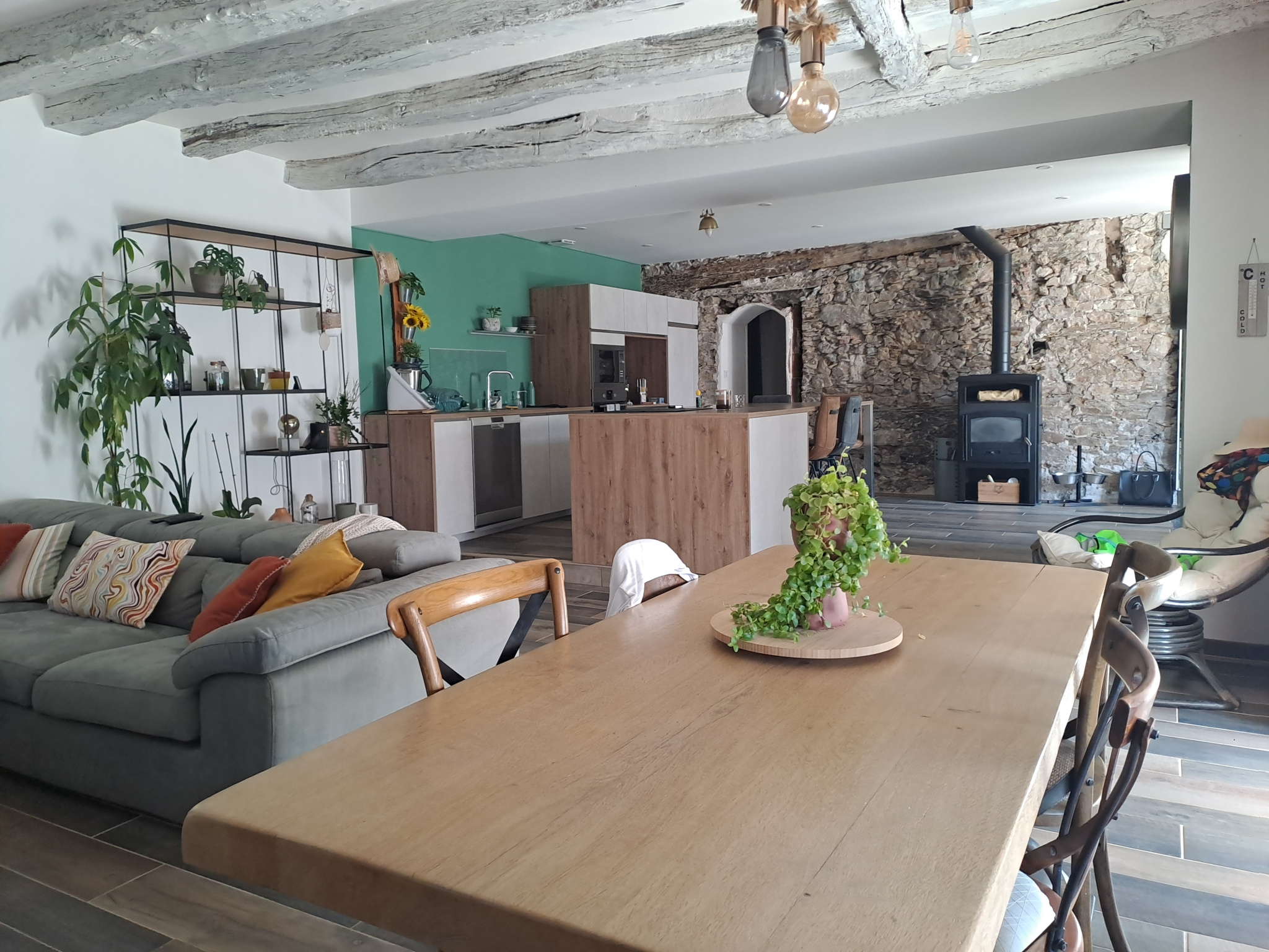 Nouveauté en exclusivité. Charmante maison en pierres rénovée avec goût permettant une vie de plain-pied située à 2 km des commodités. Le rez de chaussée offre une vaste pièce de vie dotée d'un poêle à granulés avec lumière traversante donnant sur un jardin cocooning au Sud à l'abri des regards et sur un second au Nord, une grande cuisine aménagée et équipée, une suite parentale de 16 m2 composée d'une chambre et de sa salle d'eau avec deux vasques et douche à l'italienne, WC indépendant. L'étage bénéficie d'une mezzanine idéale pour une salle de jeux avec un balcon surplombant le jardin, un palier menant à deux chambres, un bureau et une salle de bains avec WC. Cette maison dispose d'un chauffage au sol pour la partie rez de chaussée et d'une exposition plein Sud. Aucun travaux à prévoir. Pour les amateurs de la campagne, un pré clos d'environ 4 000 m2 avec abris pour animaux et un terrain de 720 m2 à proximité non attenant. Les informations sur les risques auxquels ce bien est exposé sont disponibles sur le site Géorisques : www.georisques.gouv.fr PRIX FAI TTC 293 800 EUR dont 280 000 EUR NET VENDEUR et 13 800 EUR (4,93%) honoraires agence charge acquéreur.