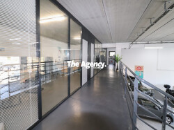 D'autre part et à l'étage accessible par un escalier métallique solide et moderne. Une grande pièce pouvant réunir trois bureaux et/ou salle de réunion qui reste facile à cloisonner si besoin. Un bureau de direction aménagé ainsi qu'un espace personnels avec Sanitaire, douche, WC, cuisine, salle de repos soulignant un réel confort de travail pour vos équipes. Le tout est climatisé et dans l'air du temps.