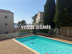 - EXCLUSIVEMENT CHEZ WEBER IMMOBILIER - LA SEYNE SUR MER / TAMARIS - Dans une résidence sécurisée et bien entretenue avec piscine à proximité des transports et de la corniche à pied. Coup de coeur pour cette villa club parfaitement optimisée. Entrée indépendante sur jardin privatif de 20 m2. Séjour/salon avec cuisine ouverte parfaitement équipée et véranda. A l'étage en mezzanine, 2 chambres dont une en mansardes avec rangements et salle d'eau. De plus une place de stationnement privative. Possibilité garage en SUS.
