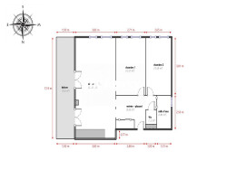 Deux chambres dont une avec placard de rangement, une salle d'eau et un WC indépendant.